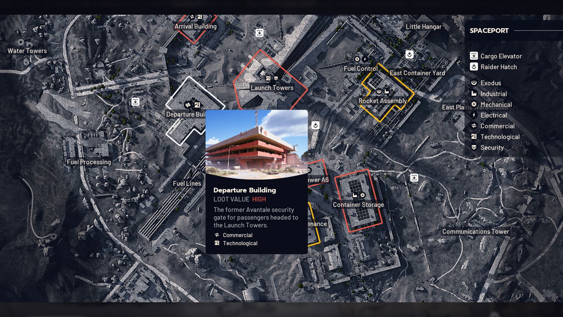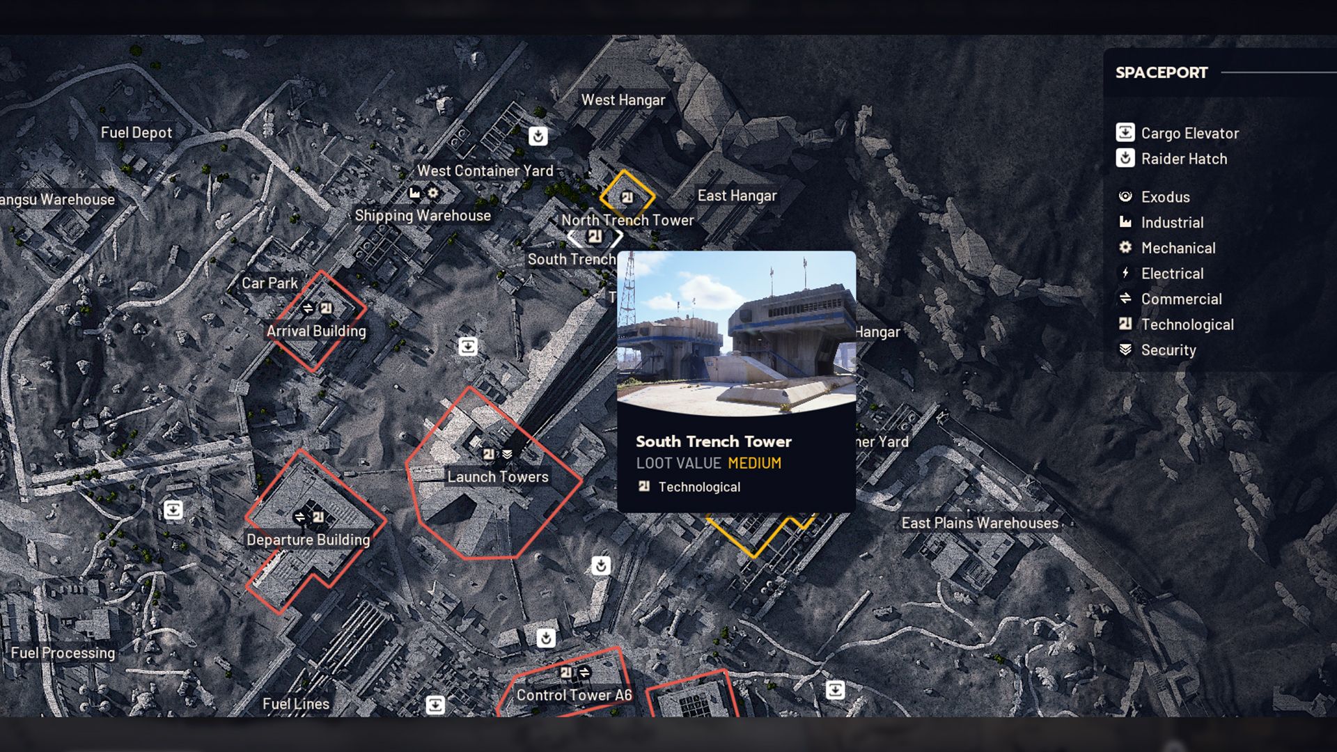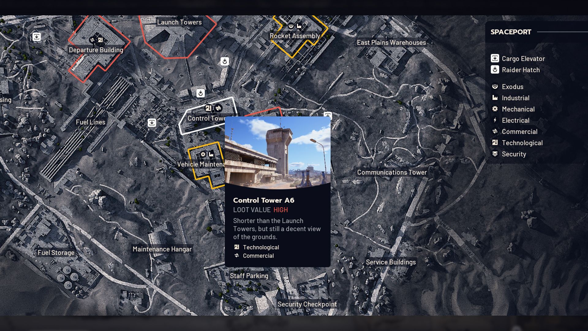 If you’re looking for Damaged Heat Sinks, Spaceport and Stella Montis are your best bets. Spaceport is particularly good because it has several areas classified as ‘Technological,’ including the Arrival and Departure Buildings. These areas are spread throughout the map, meaning you’ll usually be near one no matter where your raid begins. Keep an eye out for high-value Technological spots like the Arrival Building, Departure Building, and Control Tower A6.