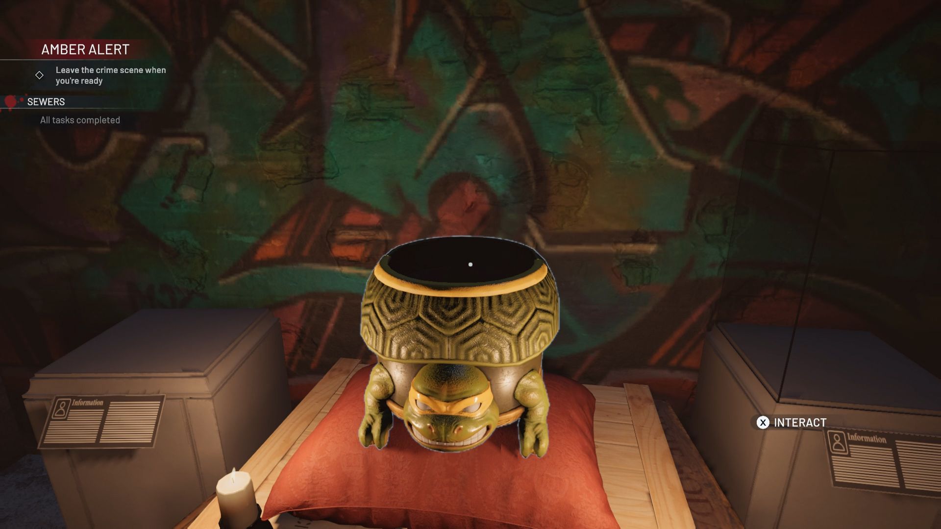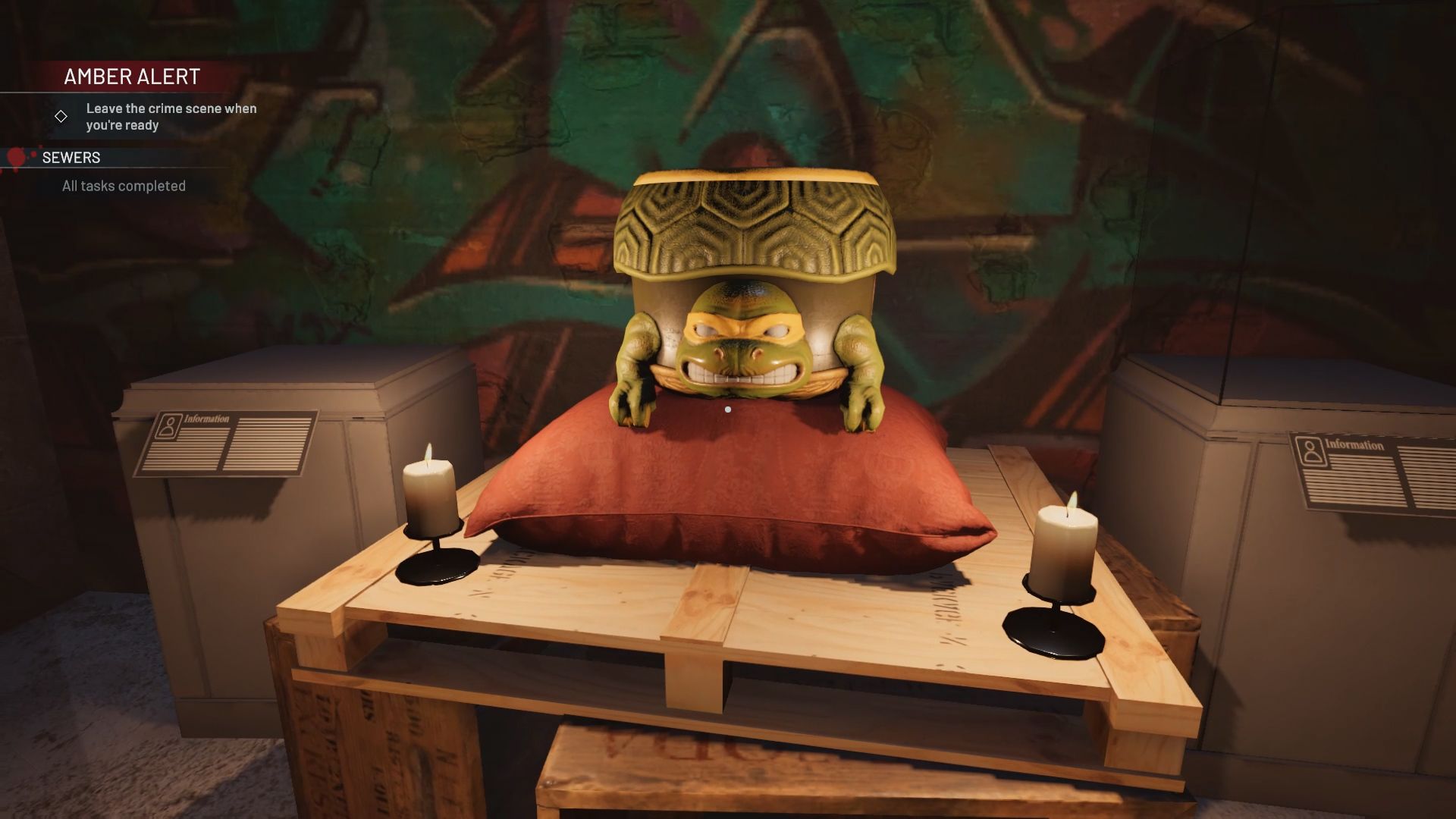 Next to the Dave’s Lair sign is a little altar of a Teenage Mutant Ninja Turtles-inspired bucket.