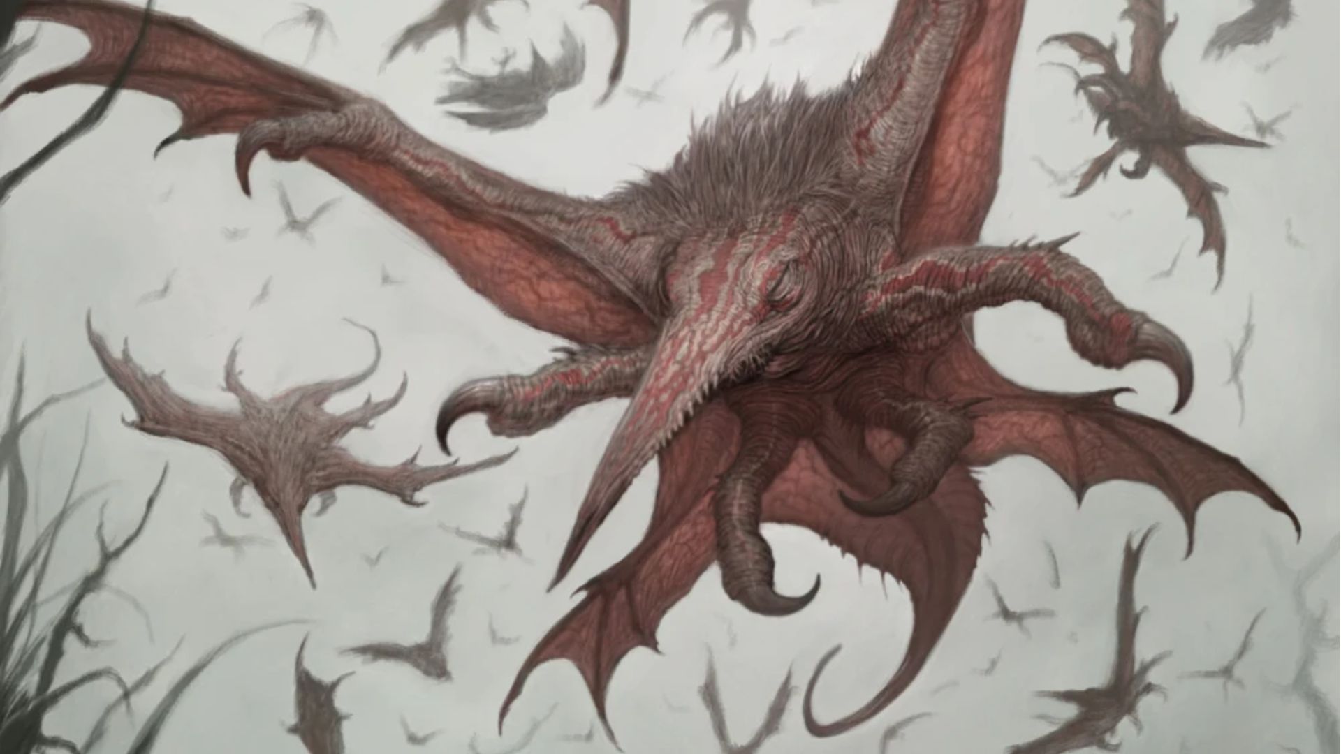 Stirges are unusual creatures originally from the Malatran Jungles, dating back to before the Godswar. Now, you can find them in almost any dark, swampy area across Faerûn and other Realms. They’re a strange mix of crow, mosquito, and bat, with sharp claws for clinging to their prey and a needle-like beak they use to quickly drain blood.