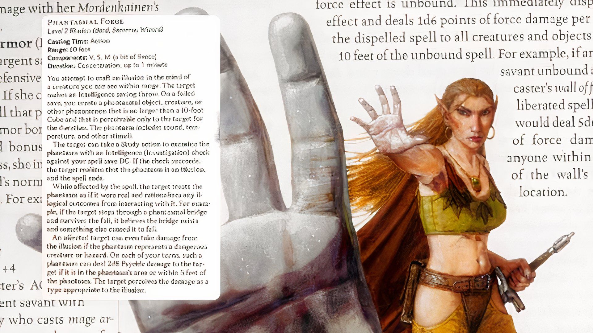 Image from Complete Arcane 3.5e While Minor Illusion creates harmless illusions, Phantasmal Force is its more powerful, damaging counterpart. If a creature fails an Intelligence saving throw, they’ll see an illusion created by the caster – and they’ll believe it’s real. They’ll even try to make sense of anything strange happening within the illusion, potentially taking 2d6 psychic damage as they perceive the damage type within their mind. Because many enemies aren’t strong against illusions, Phantasmal Force can be surprisingly effective against tough opponents, even bosses, with a bit of luck.