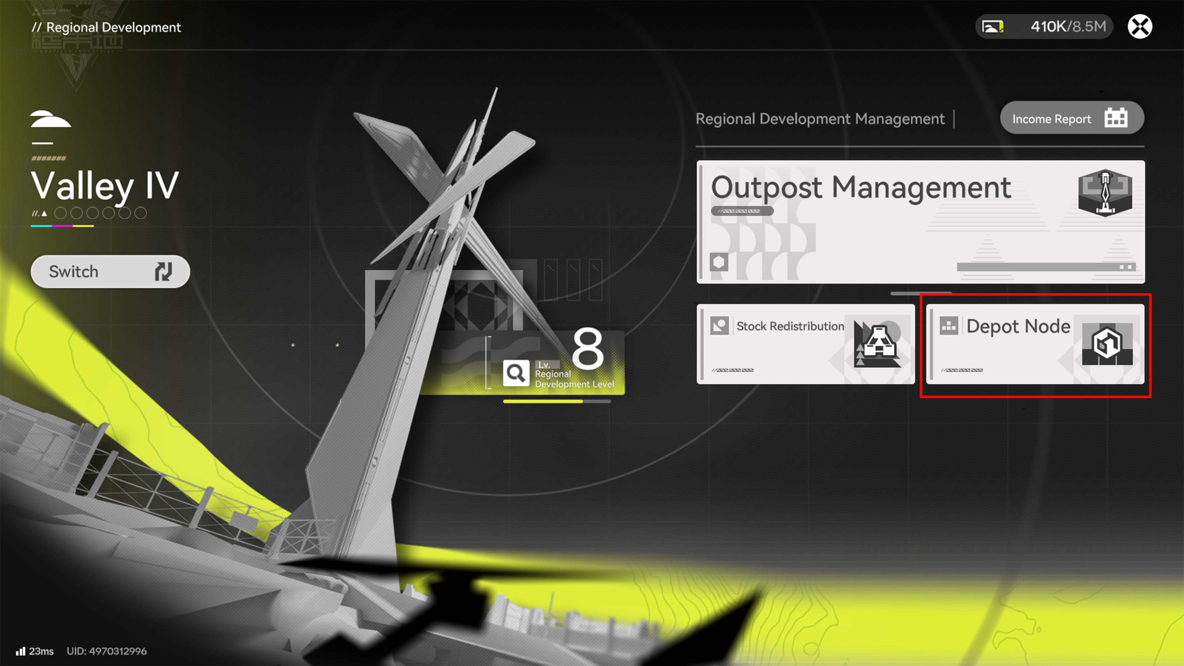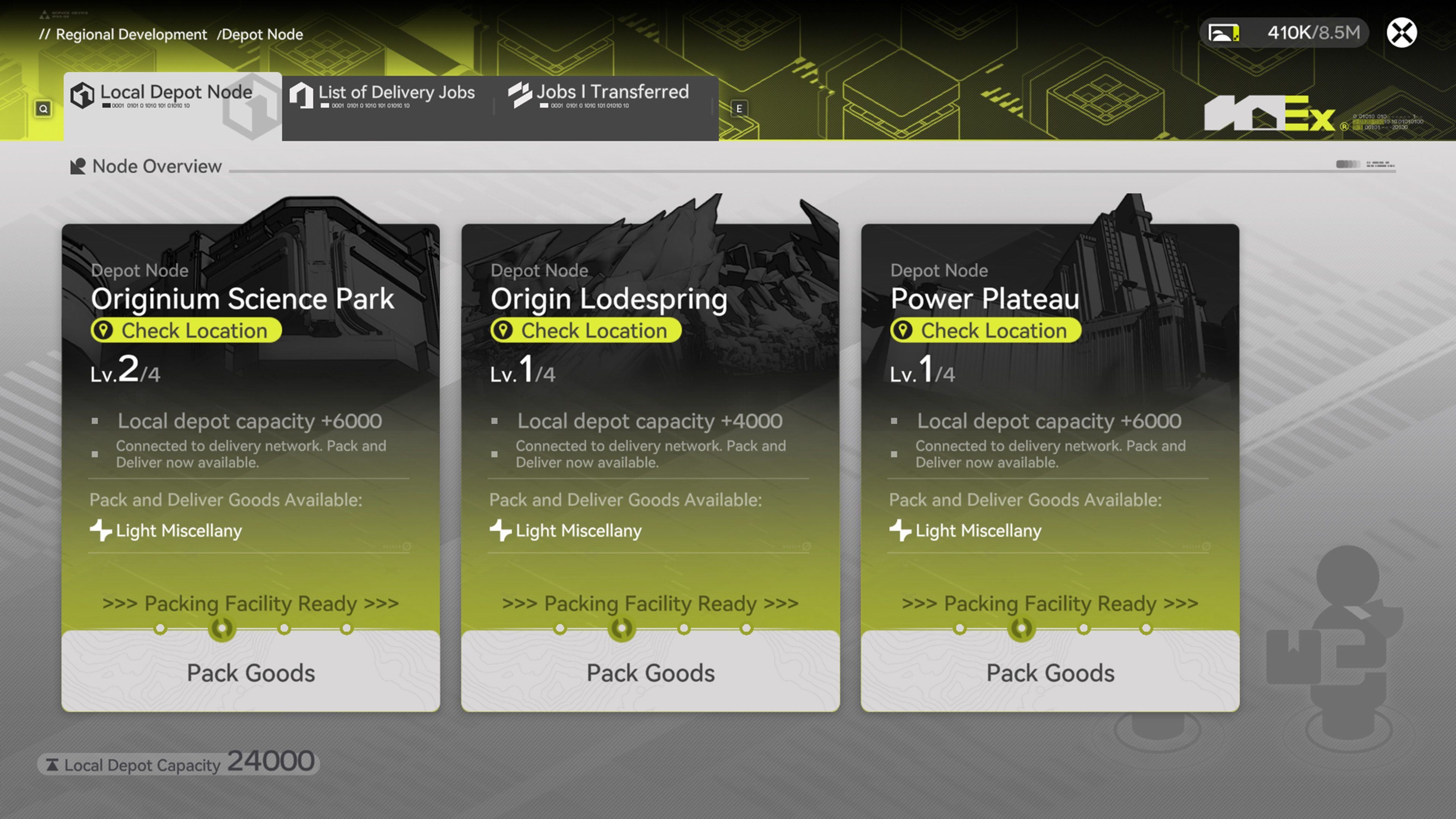 In Arknights: Endfield, players can initiate Depot Node Deliveries by going to the Regional Development page and selecting ‘Depot Node’. This will bring up a menu divided into three sections.