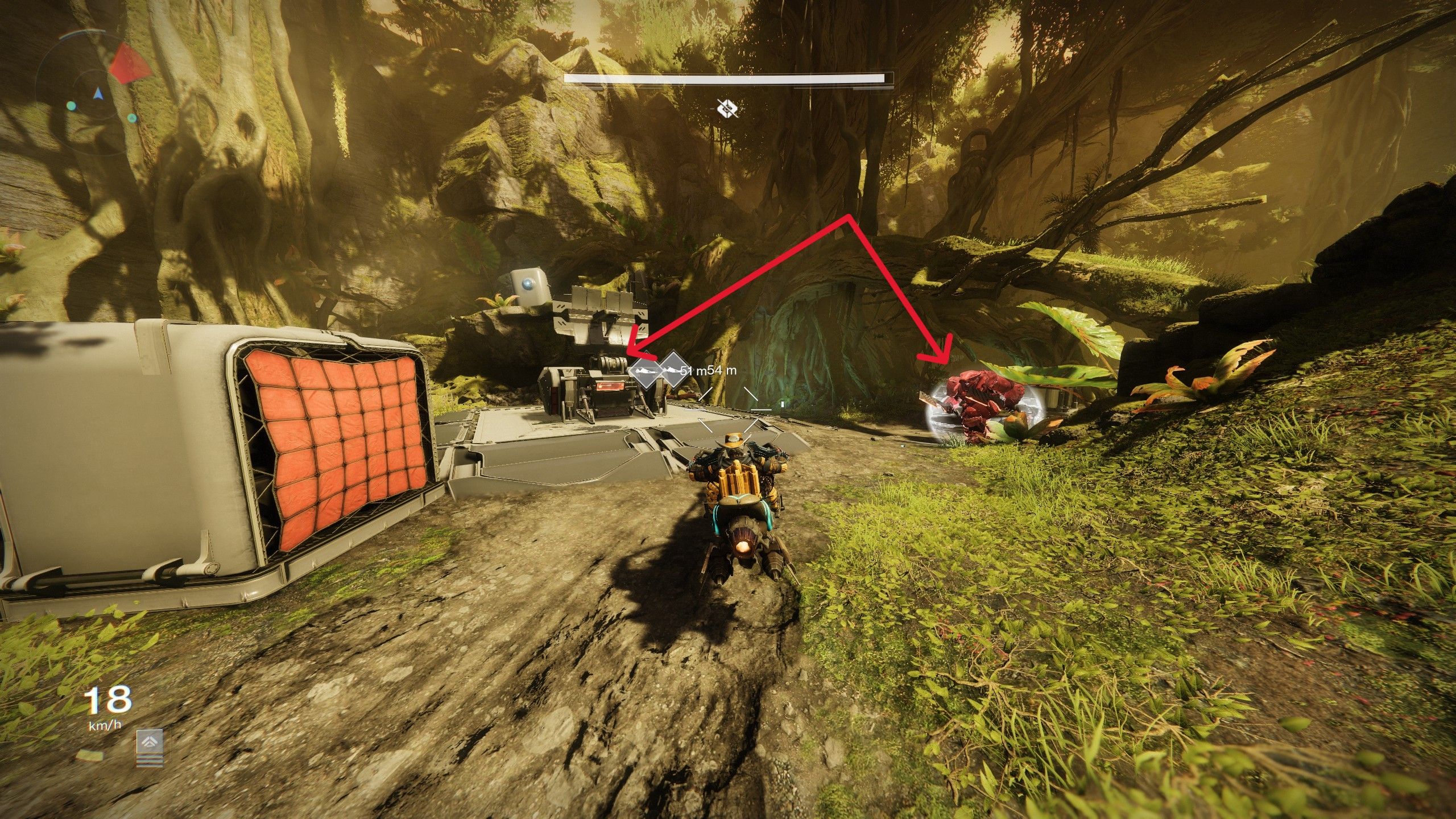 The ship is about to accelerate using its NLS drive. To move to the next platform, stand as far to the left as possible – the drive’s speed will carry you to the right. After landing, go left and destroy the blue fuse inside the room.