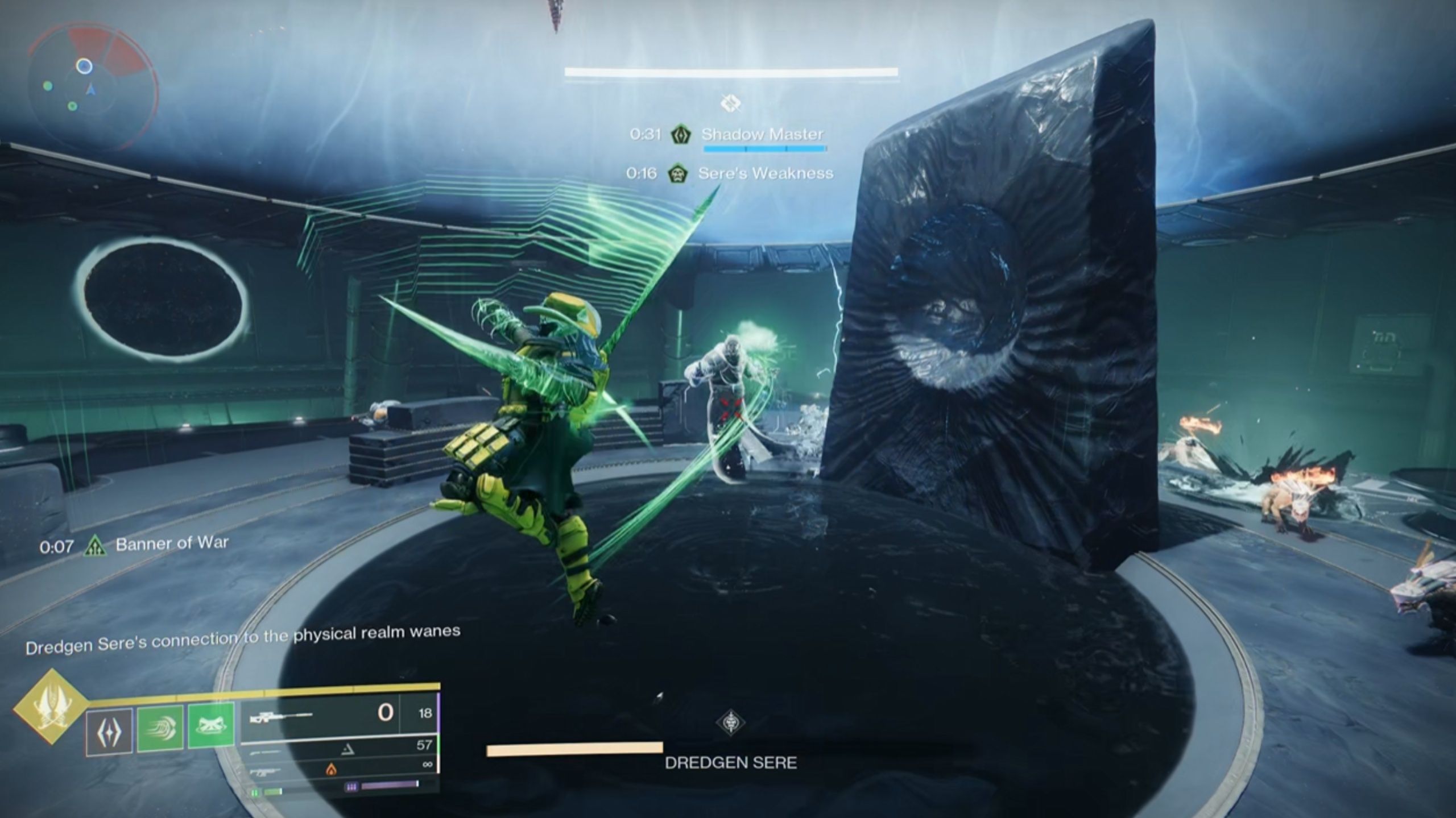 After you’ve destroyed all the Taken orbs in both areas, you’ll start dealing damage to Dredgen Sere. He’ll also summon lightning from the towers around the arena, but you can disable these towers by shooting the panels on the walls with your Shadow Power. If you deal enough damage during these phases, Sere will be defeated, and you’ll receive your final reward chest.