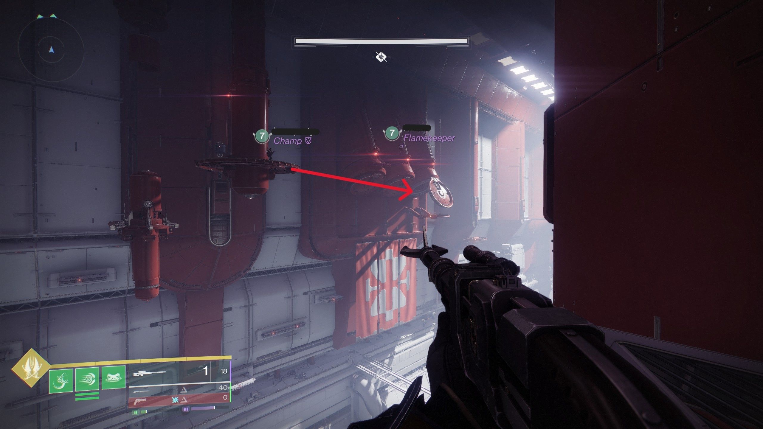 You’ll then enter a large room where you need to collect more Gathering Shadow. Climb the platforms and use a Shadow Power grenade on another panel covered in Taken energy. This will open a hatch in a red pipe, giving you access to the final challenge.