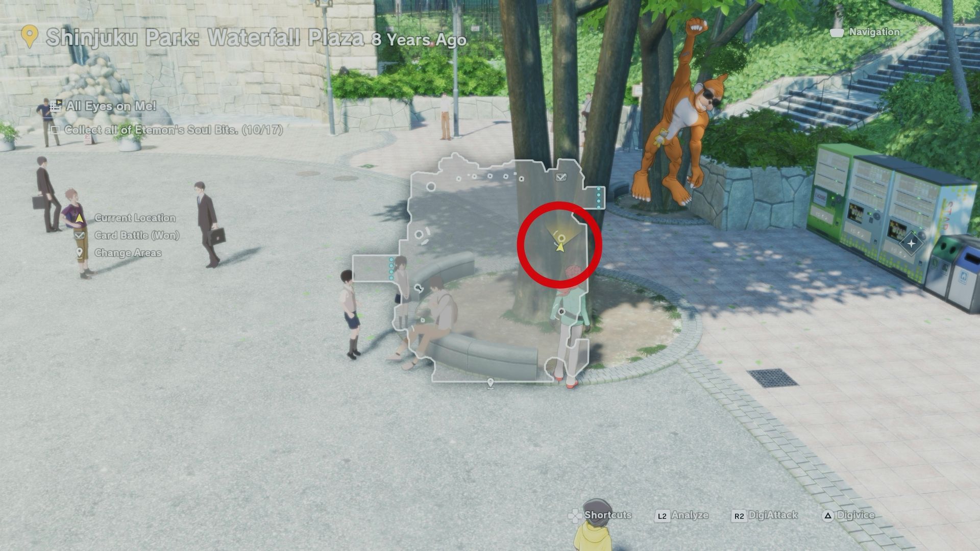 When you get to the late stage of the game, a side quest called “All Eyes on Me!” will become available. Similar to other quests involving Hiroko Sagisaka and Dr. Kuga, the game won’t show you exactly where to go on the map. You’ll need to search around old Shinjuku and Akihabara as the ADAMAS agents to find this digital monkey.