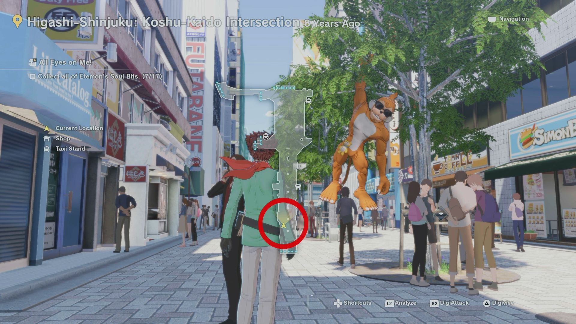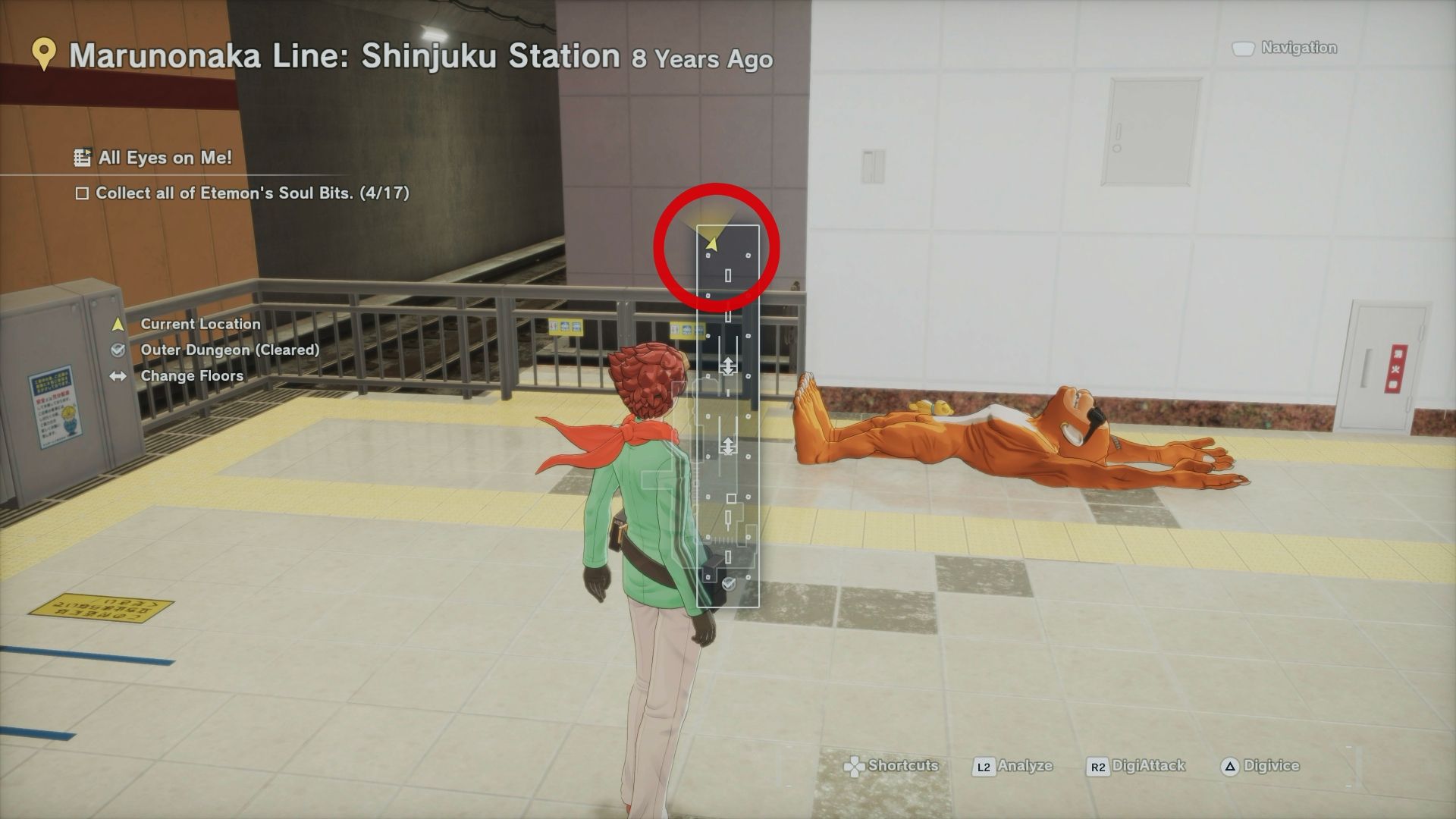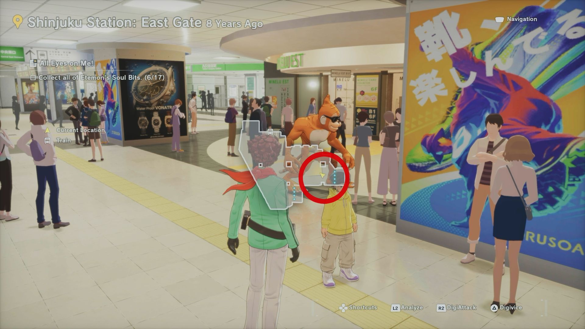 You’ll encounter another Etemon right away, so defeat it. Then, head to the metro and take it to Higashi-Shinjuku, specifically Second Avenue.