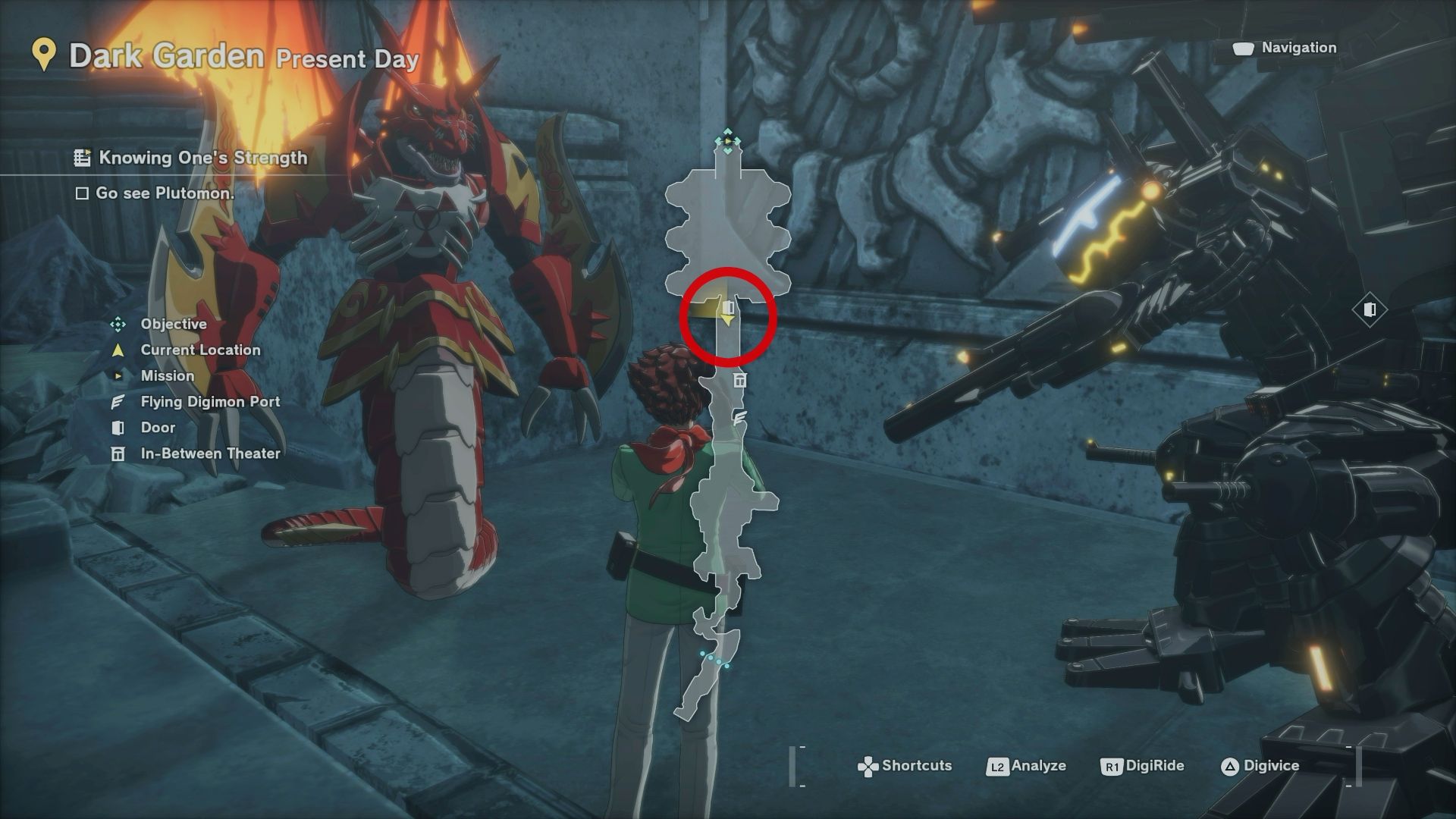 Upon arriving in Dark Crevasse, talk to the nearby Birdramon and fly to the Dark Garden.