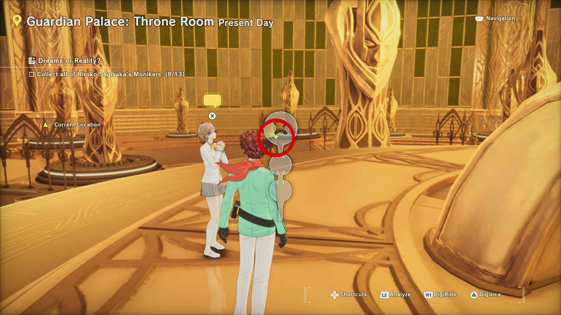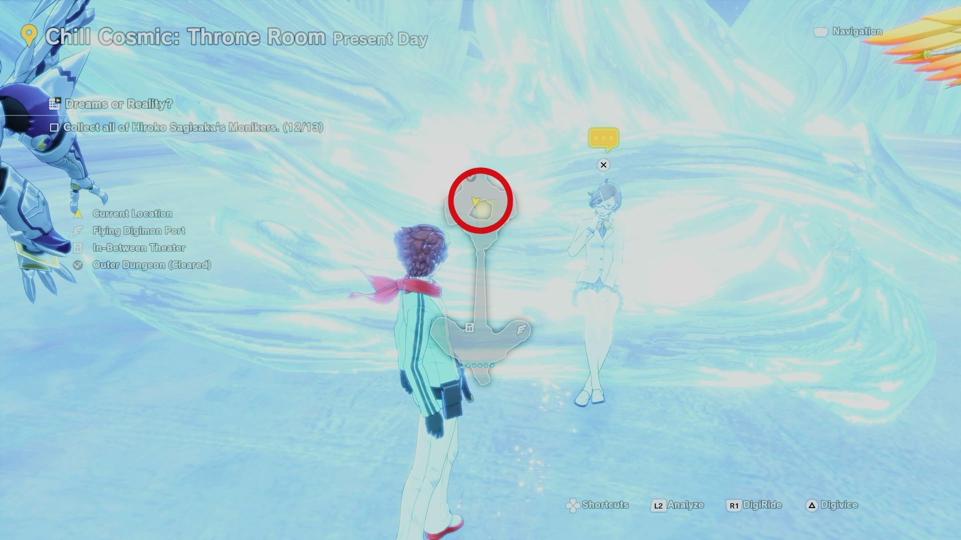 This should be simple. Head back to the Guardian Palace, and you’ll find Hiroko in the next room – she’s hiding by appearing as a god-like Digimon.