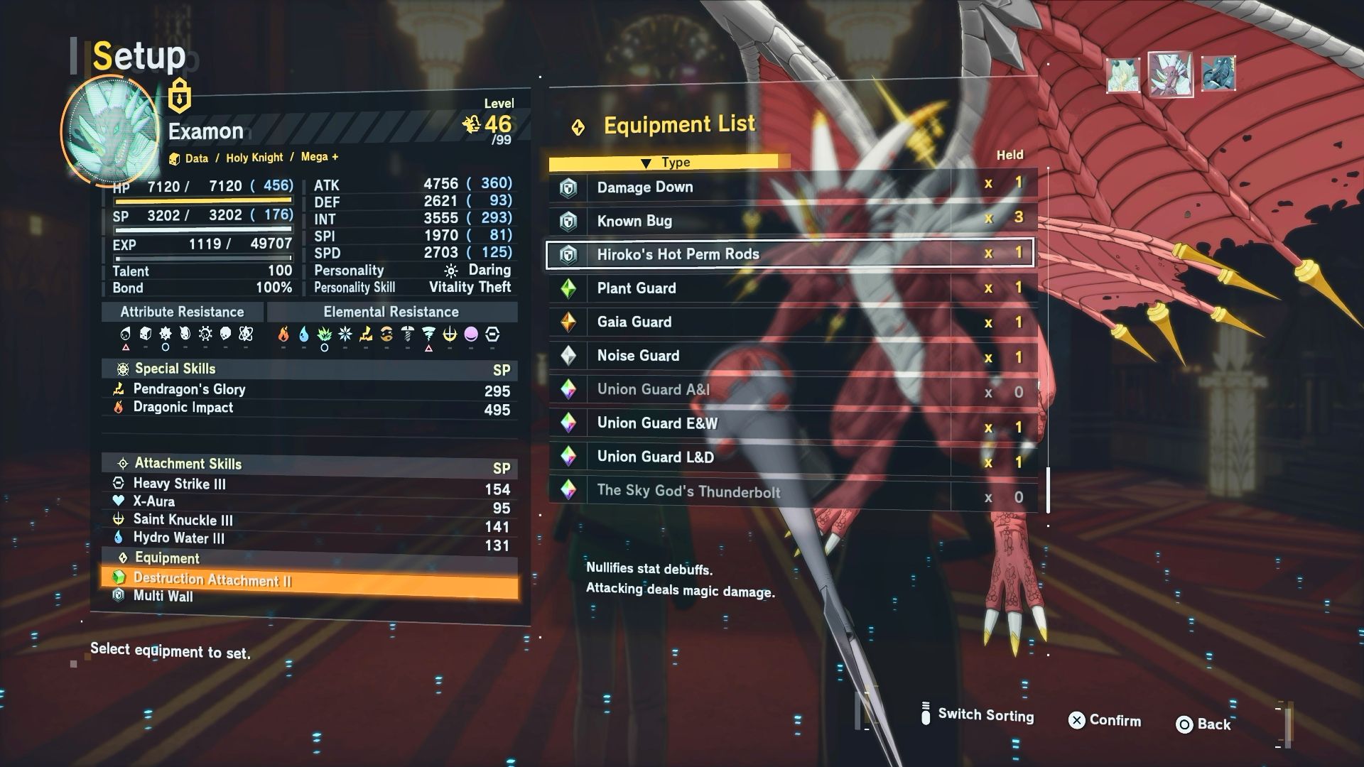 If the game converted all damage types – even physical attacks – into magic damage, that would be a really cool change. Imagine applying that to a character like Aegiochusmon: Holy, who has incredibly high magical ability but whose special attack, Lightning Shower, surprisingly does physical damage.