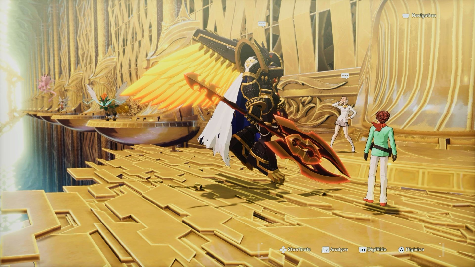 Don’t waste time! Grab Birdramon’s fiery tail to fly directly to the Throne Room.
