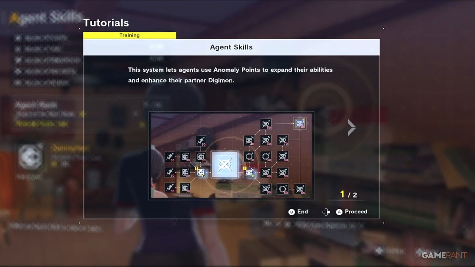 When you access the Agent Skills menu, you can use Anomaly Points to learn new abilities for both yourself and your Digimon partners. You earn Anomaly Points by finishing missions as you advance the main storyline, and you can also obtain them by completing optional side missions.