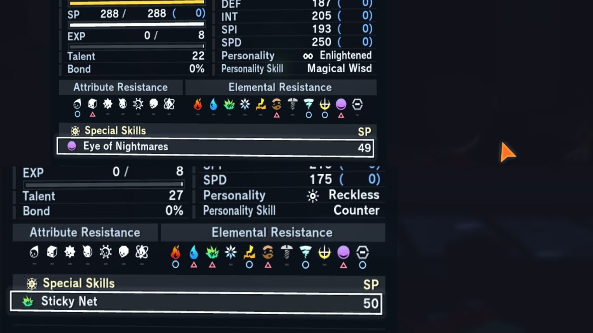 Certain Personality Skills change a Digimon’s Stats permanently, or until those skills are replaced with different ones. As an example, Stout Strength increases a Digimon’s STR based on its current HP. Other skills are only active during fights; for instance, Cheer boosts ATK and INT based on the combined bond level of all allied Digimon when a battle begins. Many different skills can be very helpful in battle, and players should figure out which ones work best for how they like to play (and what their Digimon need).