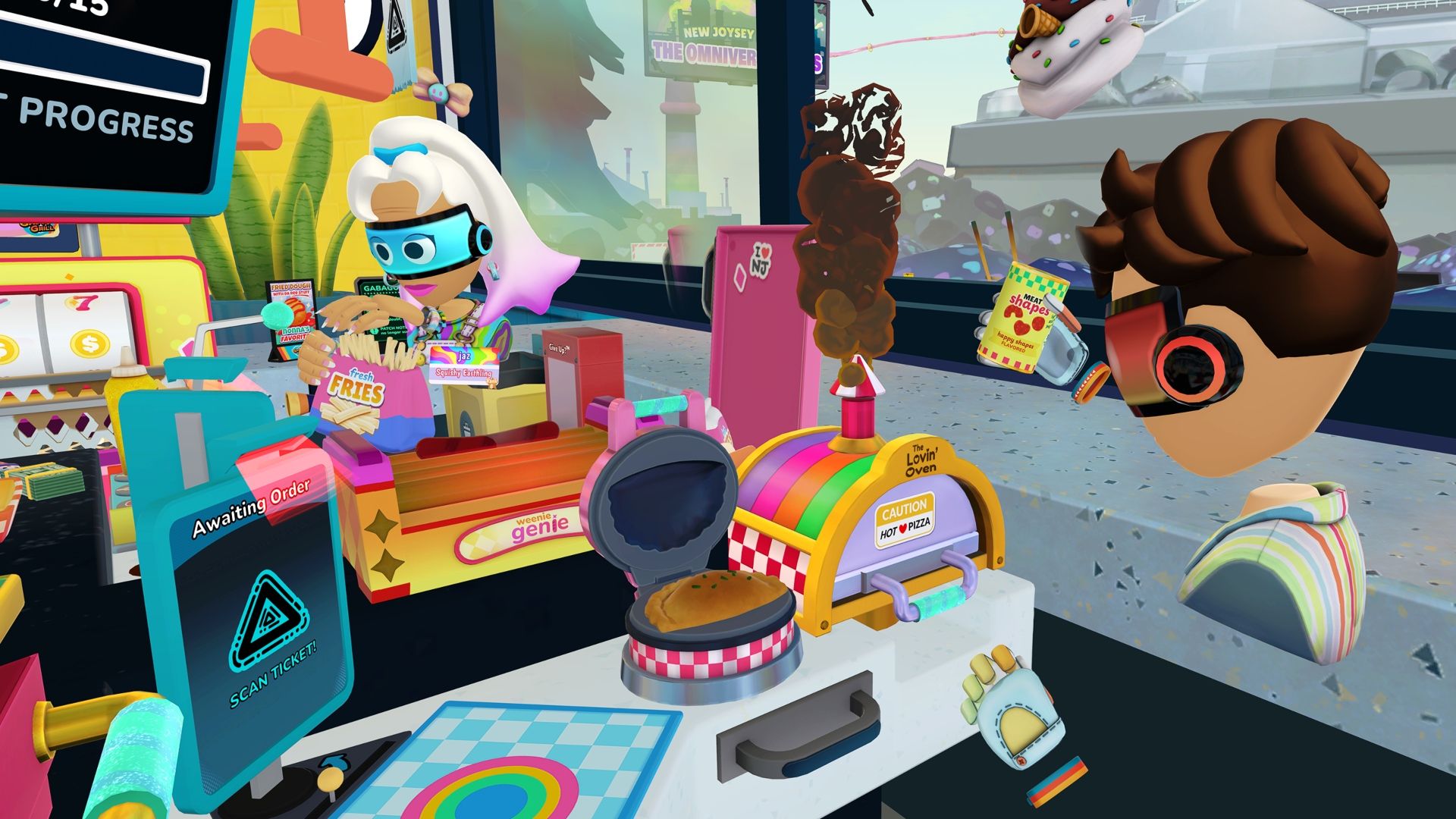 Dimensional Double Shift is a multiplayer VR game for 2 to 4 players, using hand tracking. You and your friends work together to run a diner and garage that travels through different universes. Youāll visit amazing dimensions and help the people who live there. We started with Treeattle, then released Hexas, and now weāre excited about New Joysey. Expect lots of silly and unexpected tasks! The game focuses on teamwork, but itās also about the fun of just relaxing and pretending to be a low-paid worker at a roadside gas station.