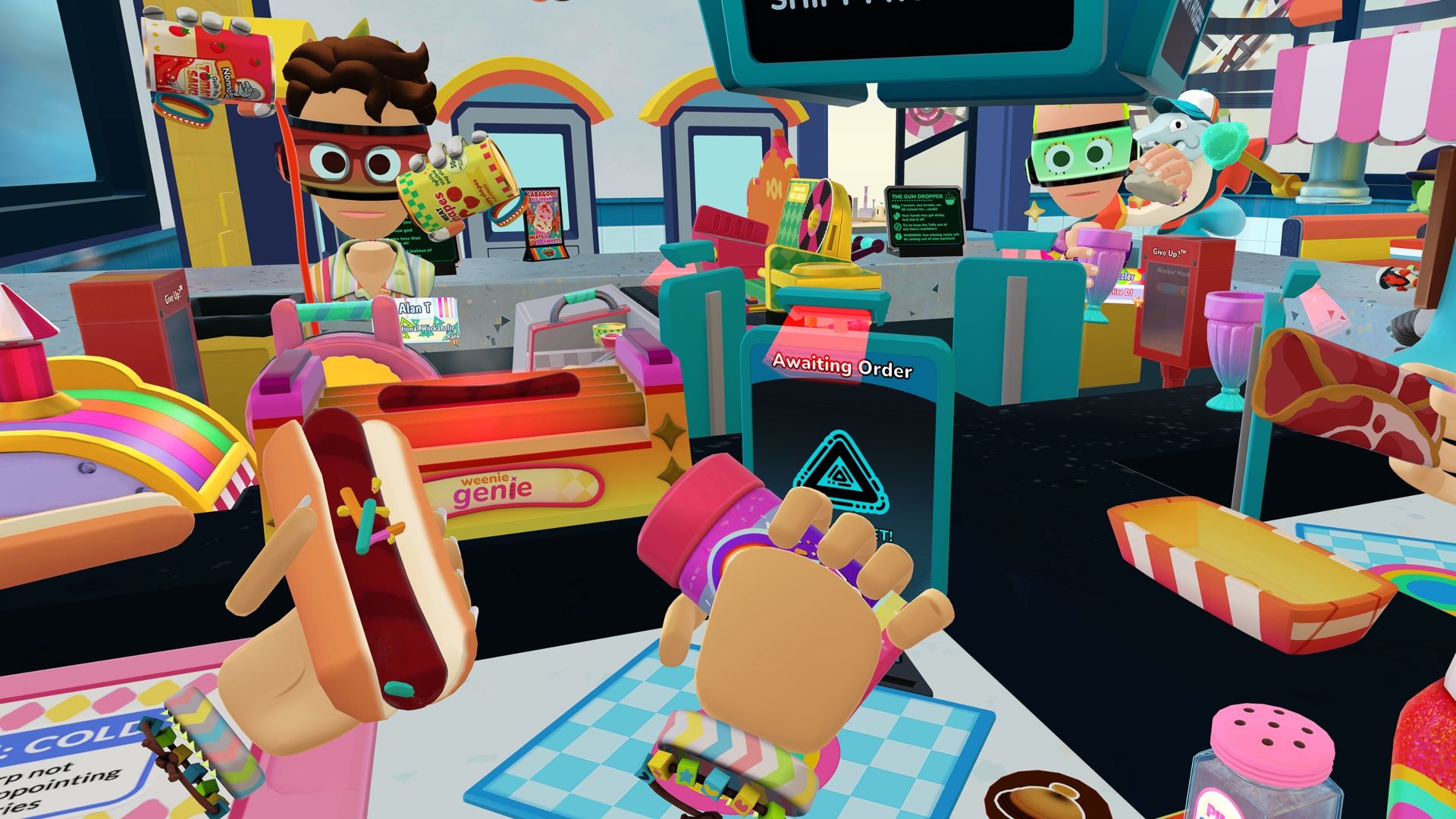 What I find most appealing about Dimensional Double Shift is that you play the whole game without a controller. You use hand-tracking for everything – from picking up order slips to applying mustard to a hot dog, and even fueling a flying car.