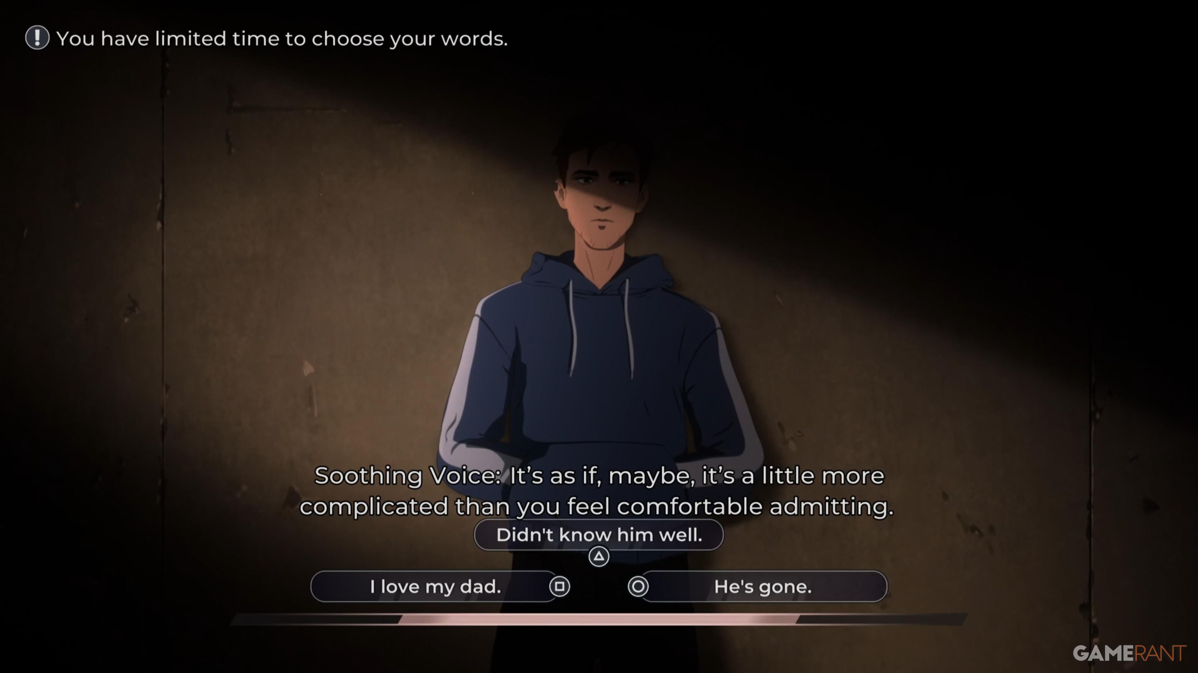 During the conversation, you’ll be asked a direct question: “How do you really feel about your father?” You’ll then have three different ways to respond.