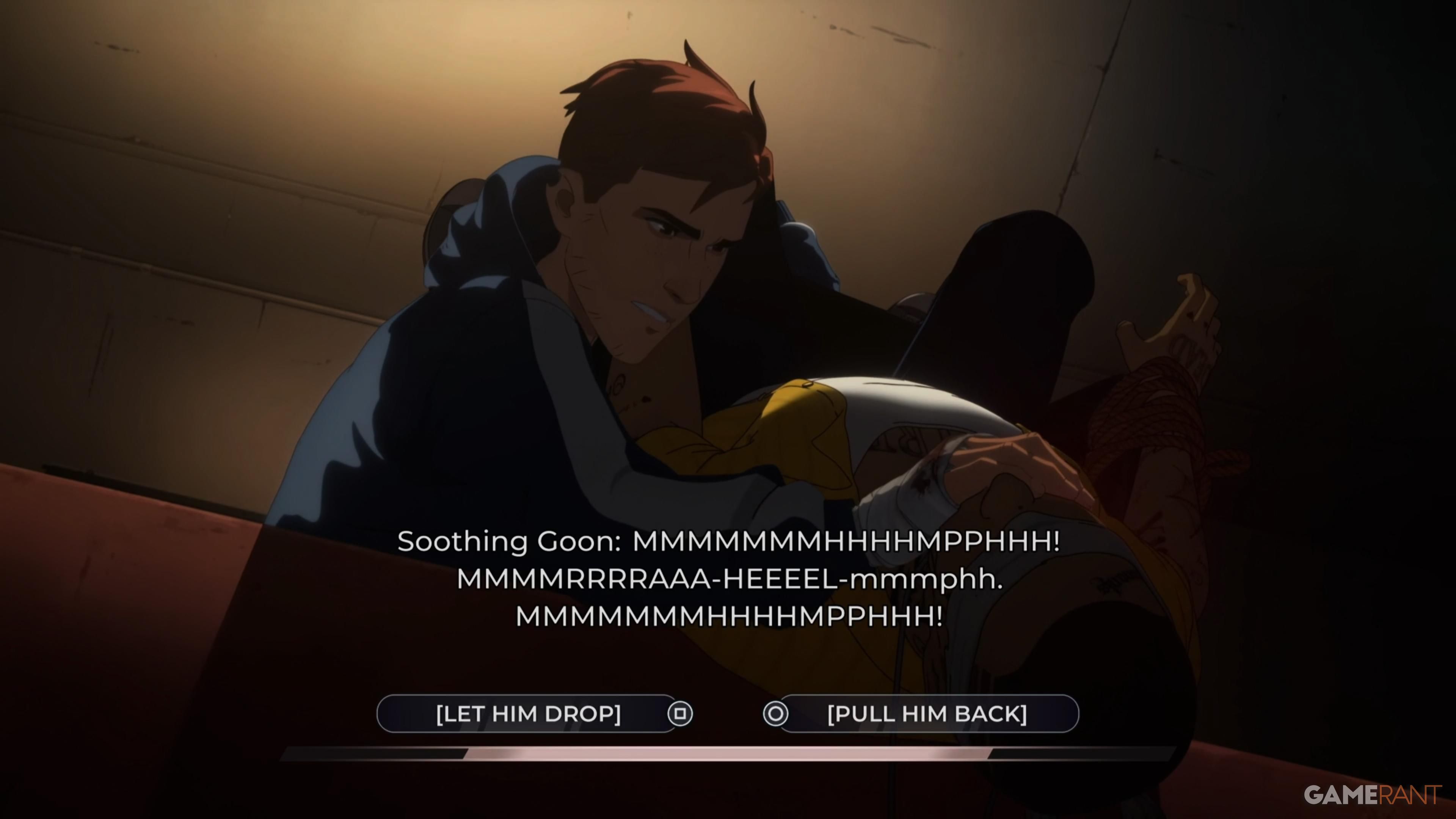 Choosing “Let Him Drop” isn’t a big decision, but it will lead to a slightly different scene later in the episode. Knowing this, you can continue enjoying the story as this superhero tale unfolds.