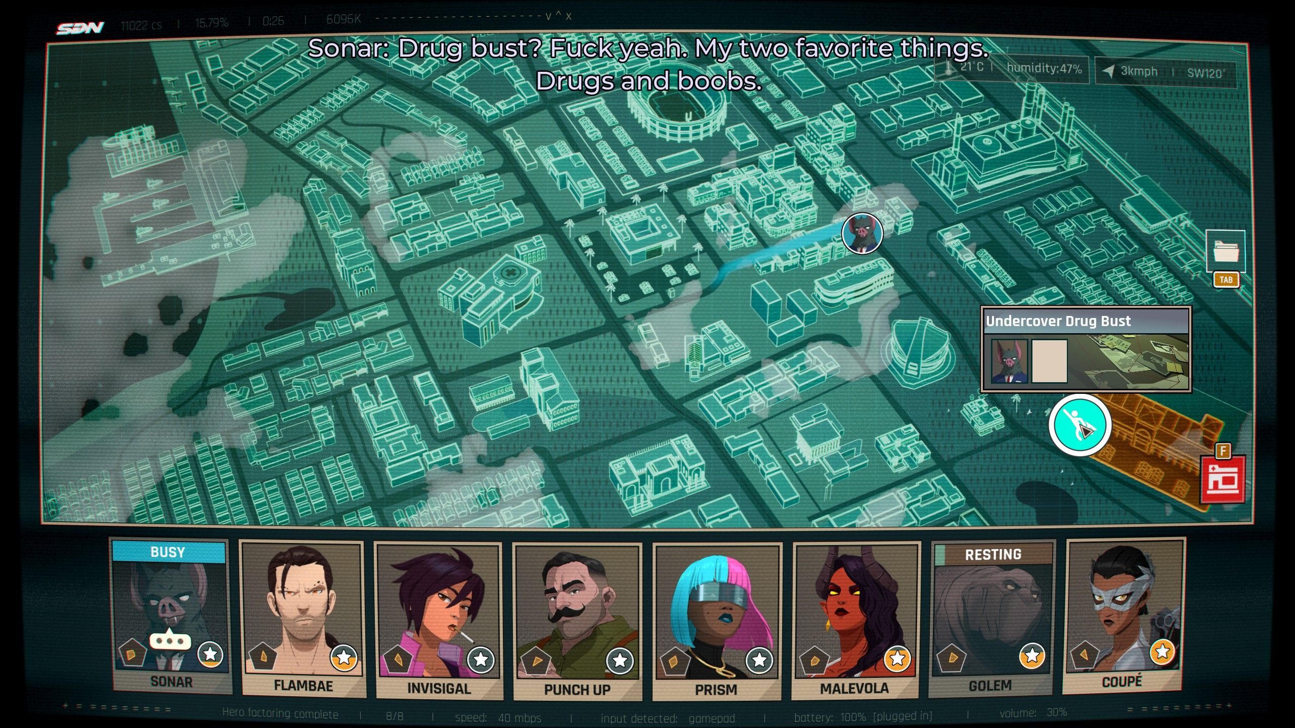 Dispatch’s core gameplay unfolds over eight episodes, putting you in charge of radio communication for a team called Z-team across two work shifts. You’ll select heroes – either individually or as a team – and send them on timed missions to complete different jobs.