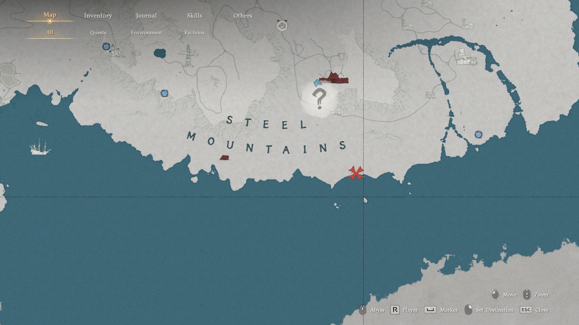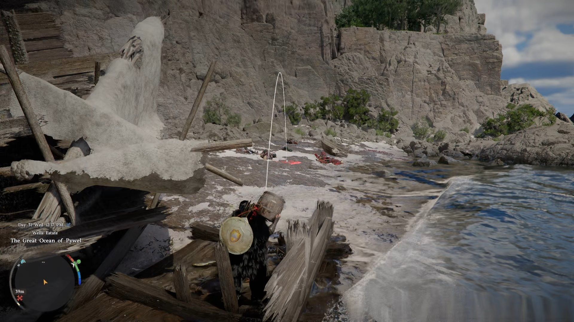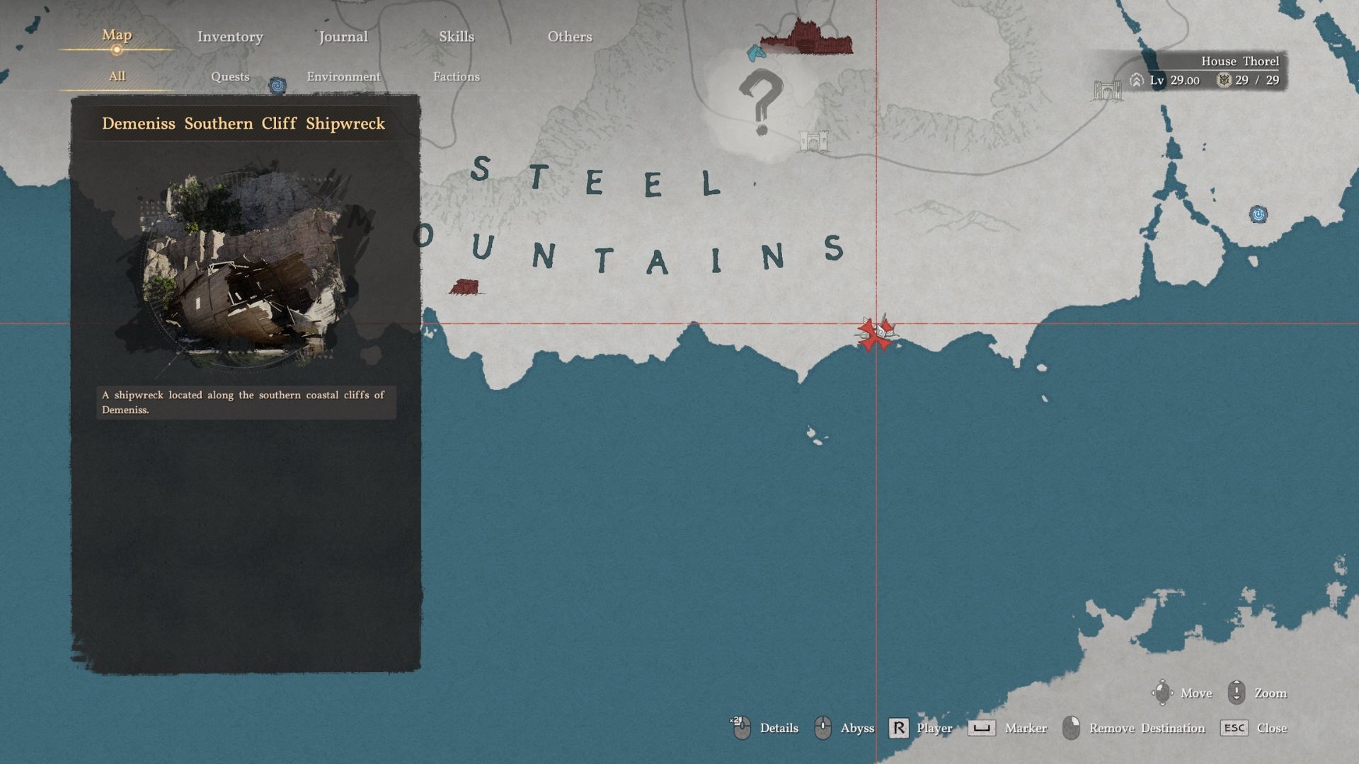 - Head east through the mountains to the location marked on the map to reach the Demeniss Southern Cliff Shipwreck.
