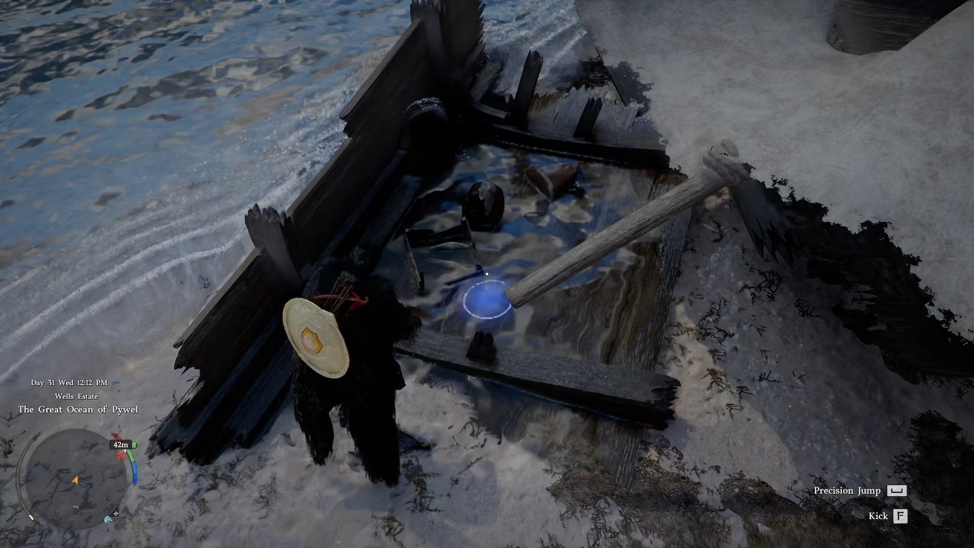 In Crimson Desert, you can find the Double-Headed Axe of Greed – a one-handed weapon – near a shipwreck. The shipwreck is located southeast of the Steel Mountains, right at the southern border of the game map.