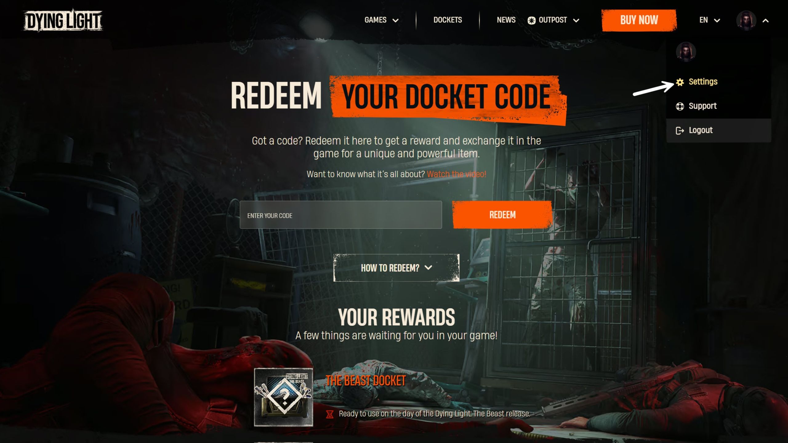 - Hover over your display picture in the top-right corner of the Docket website and click on the settings button. Here’s a direct link to the Dying Light Outpost website as well.