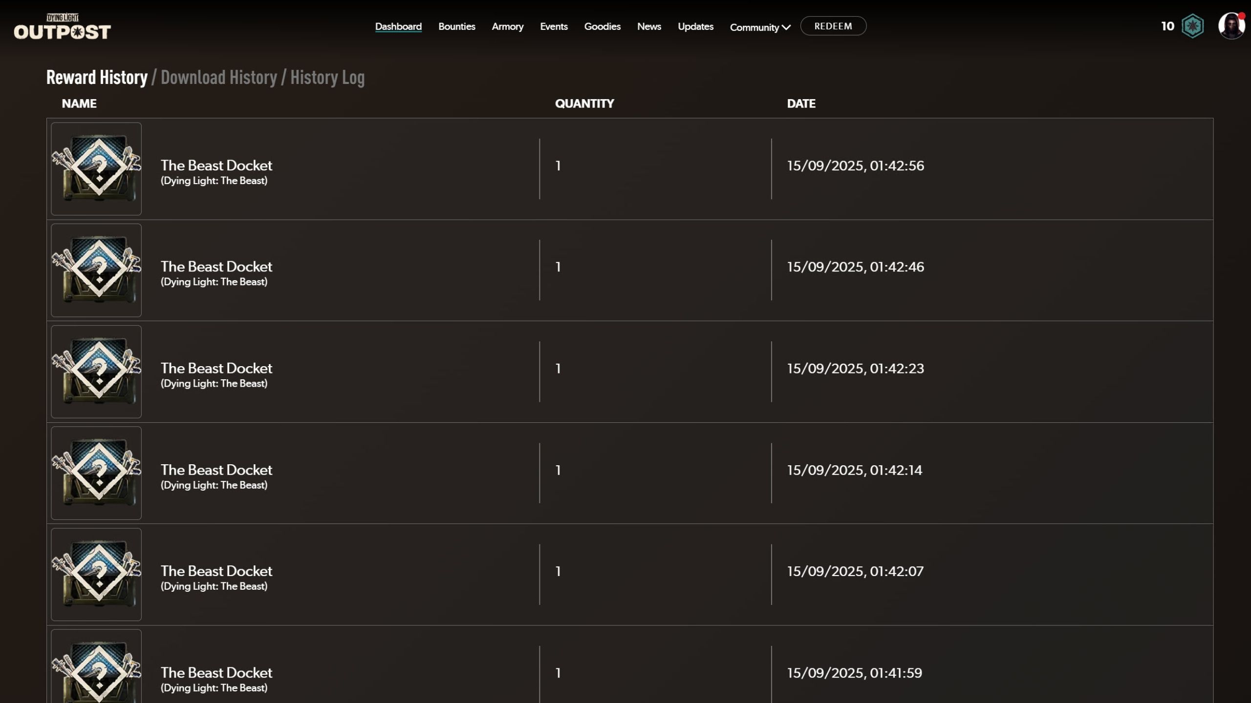 - The Docket code will be redeemed and show up as the Beast Docket in the “Your Rewards” list below.