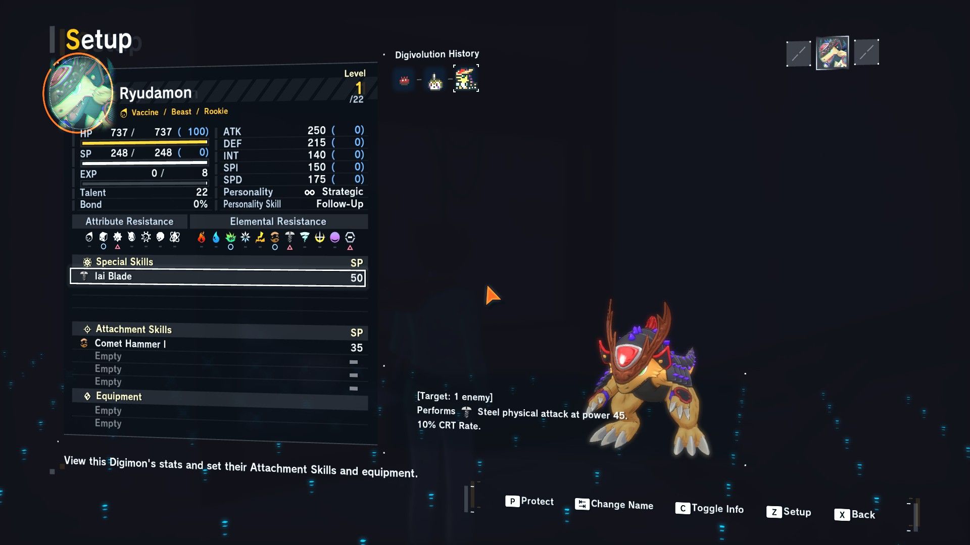 Throughout your adventure, Ryudamon and Dorumon will be valuable allies. Once you reach the late game (Agent level 7 or higher), you can combine them through Jogress (DNA) Evolution to create a powerful Digimon capable of overwhelming enemies. You can get Ryudamon early by evolving Tsunomon after earning at least 250 SP, and Dorumon evolves from Dorimon, which you can find in the early stages of the game while exploring the sewers of Central Town.
