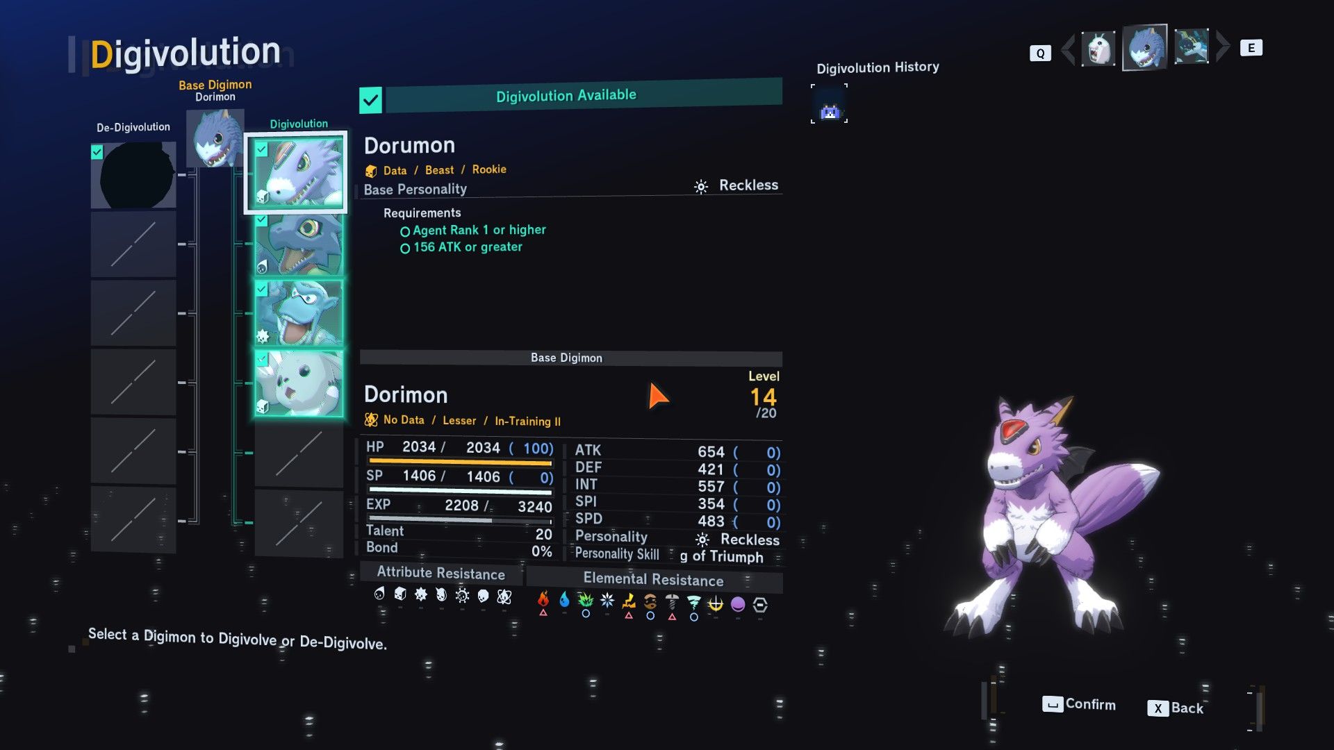 If you’re looking for sheer power, Lucemon is an excellent Digimon to have on your team, and it’s available earlier if you chose Patamon as your starting partner. Players who start with Patamon can revert to Tokomon at Agent Rank 5 and then raise Tokomon to Talent Rank 30 to unlock Lucemon. Lucemon is a uniquely strong Rookie-level Digimon with the power of a Mega, and it can remain that way for a significant portion of the game. While Lucemon won’t evolve further until you reach Agent Rank 7 in the late game, it becomes an incredibly powerful Virus-type Digimon on its own. Lucemon Fall Down is already the strongest Virus-type Digimon available, and it’s not even Lucemon’s final form! It continues to evolve into Lucemon Satan Mode and then Lucamon Larva Mode, both incredibly powerful forms with devastating abilities.