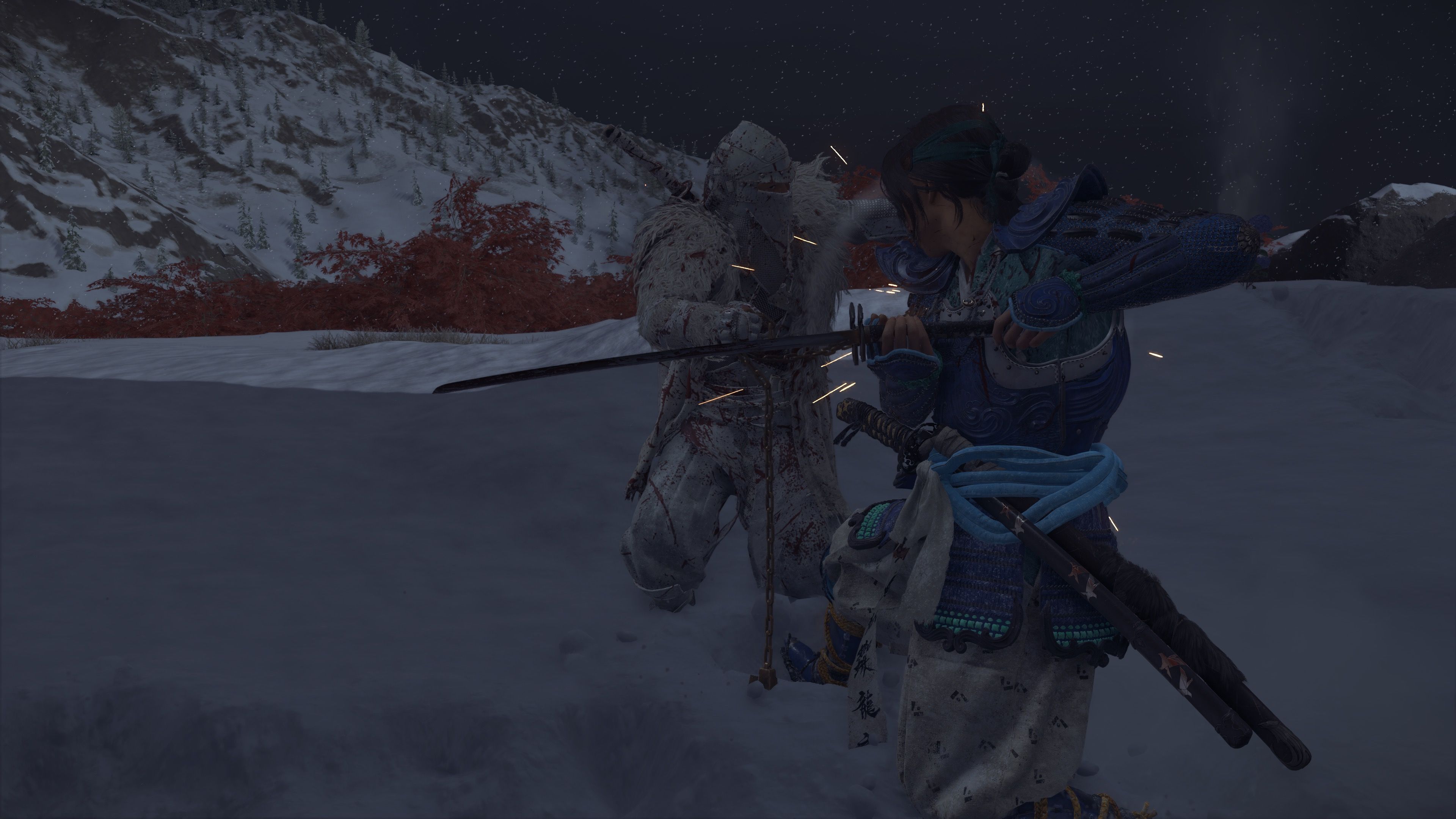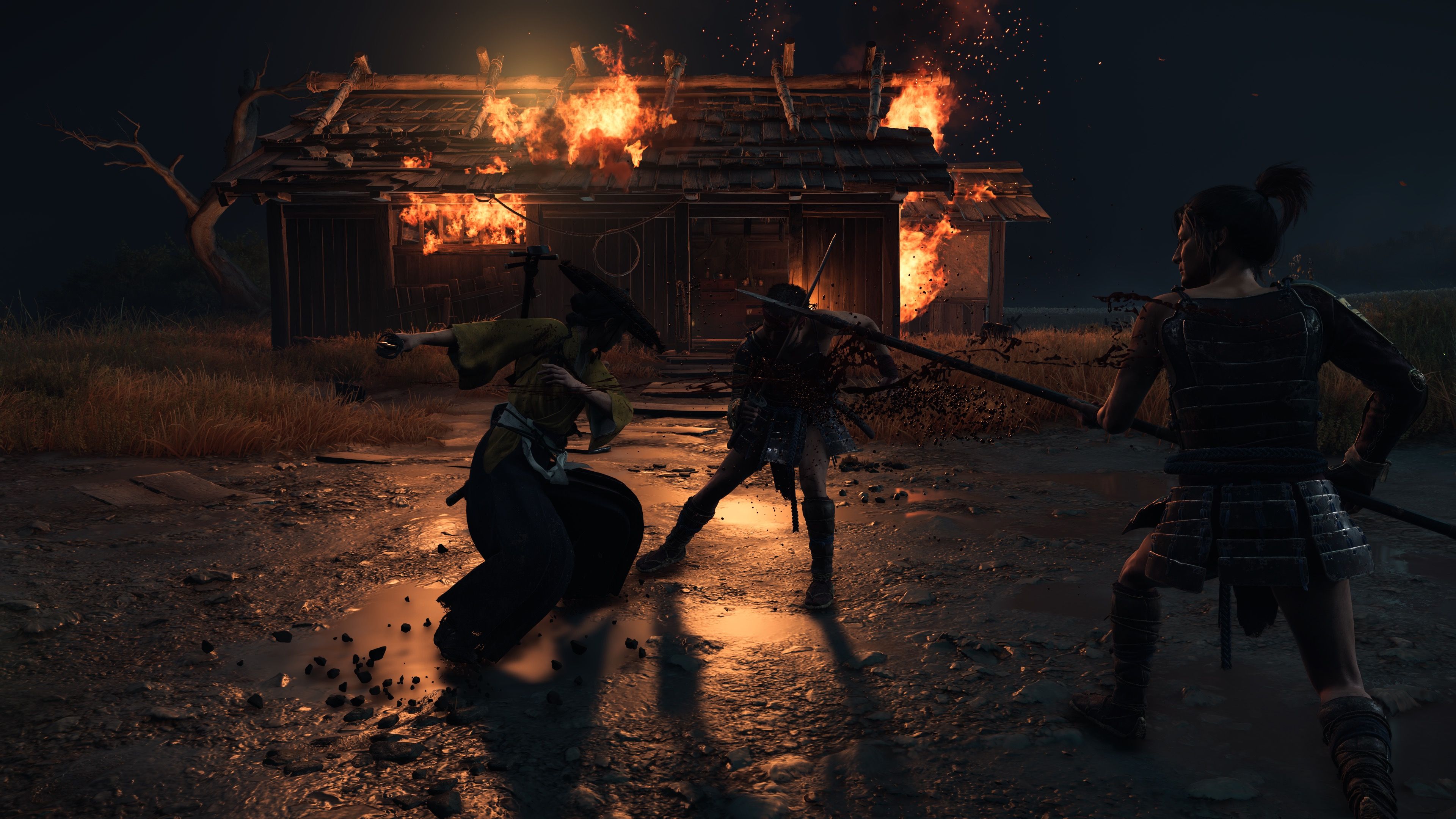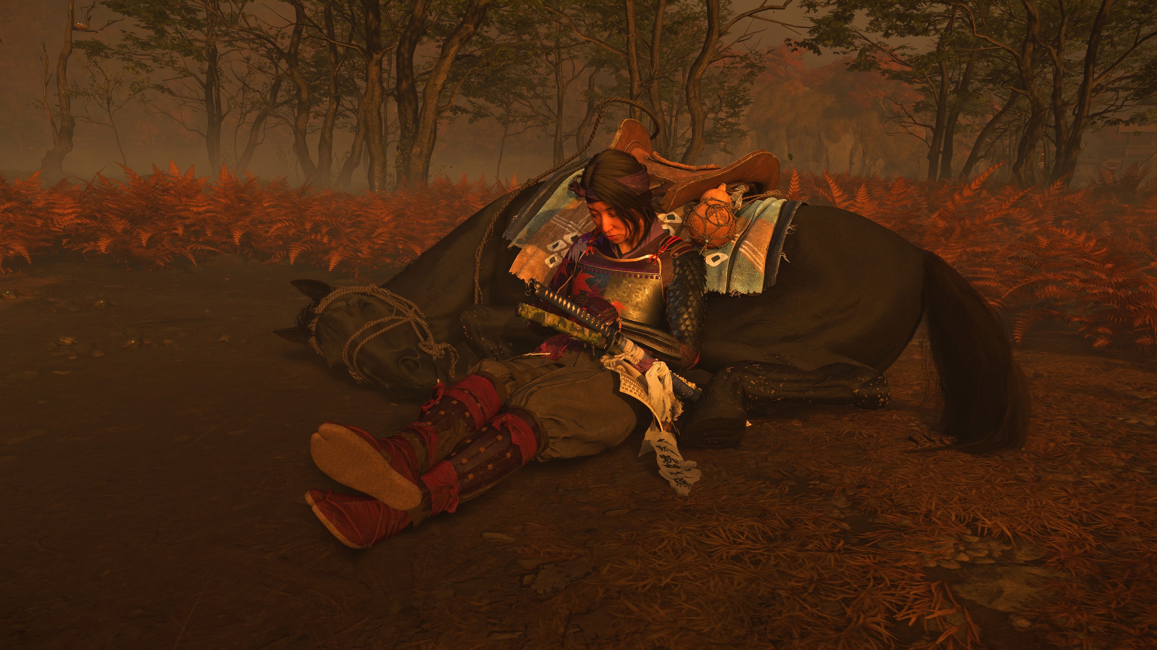 Even on the hardest difficulty setting, Atsu won’t get hungry or tired, even if he doesn’t sleep. The game now features a “camping” system. Players can set up camp in most locations, triggering a short mini-game to build a fire. While the fire-building part can be skipped, camping offers several options: crafting ammunition, sleeping to recover, cooking fish, playing the shamisen, and even chatting with occasional visiting NPCs.