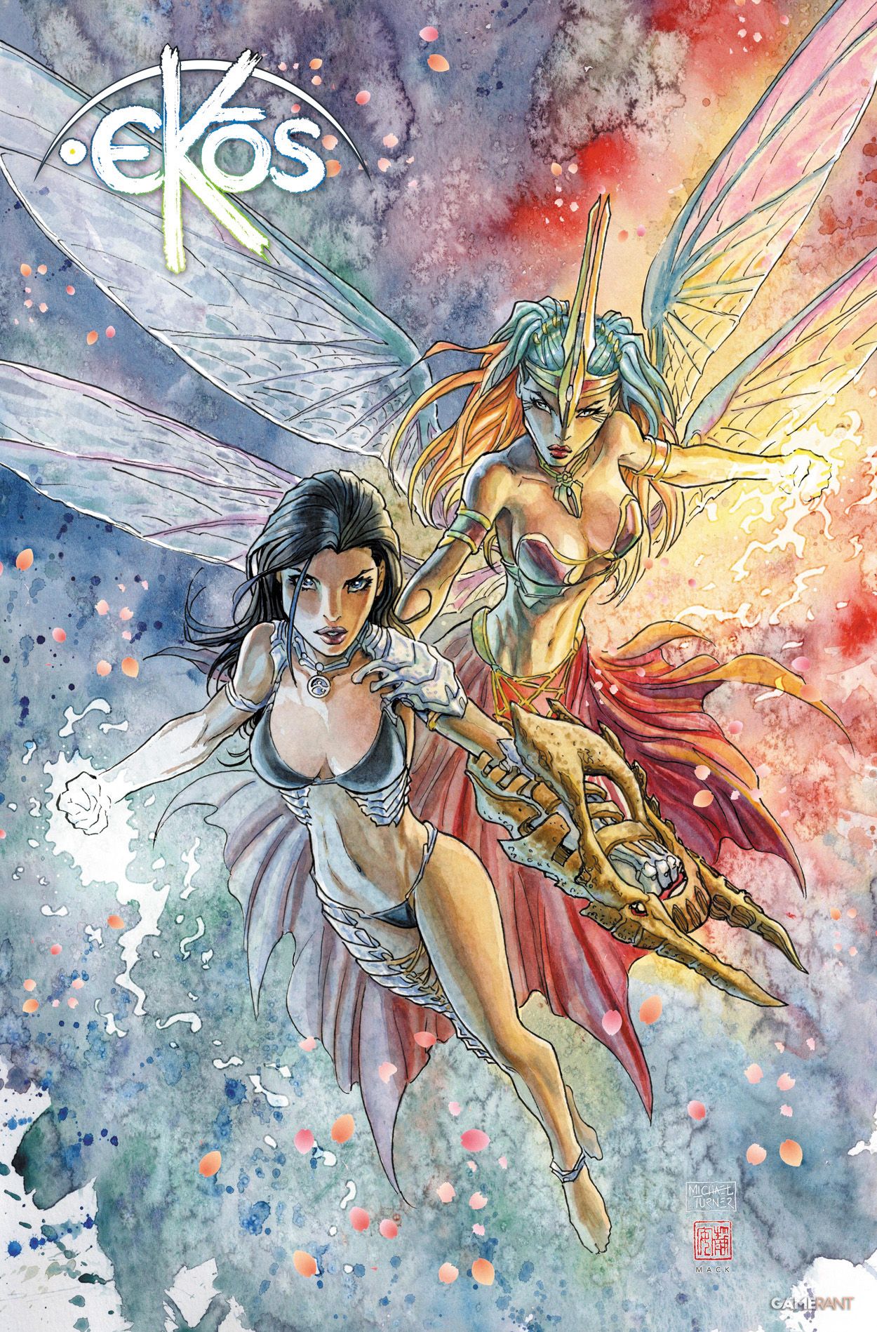 The story in *Ekos Volume 2* will follow on from the first book, continuing the main character’s adventures. The previous volume introduced readers to characters created by Michael Turner, like the popular Grace from *Soulfire* and Aspen from *Fathom* – both featured on the cover art. *Ekos* is the first time these characters have all appeared together in one shared universe, and *Volume 2* will delve further into how they interact with humans and the problems within their own worlds.