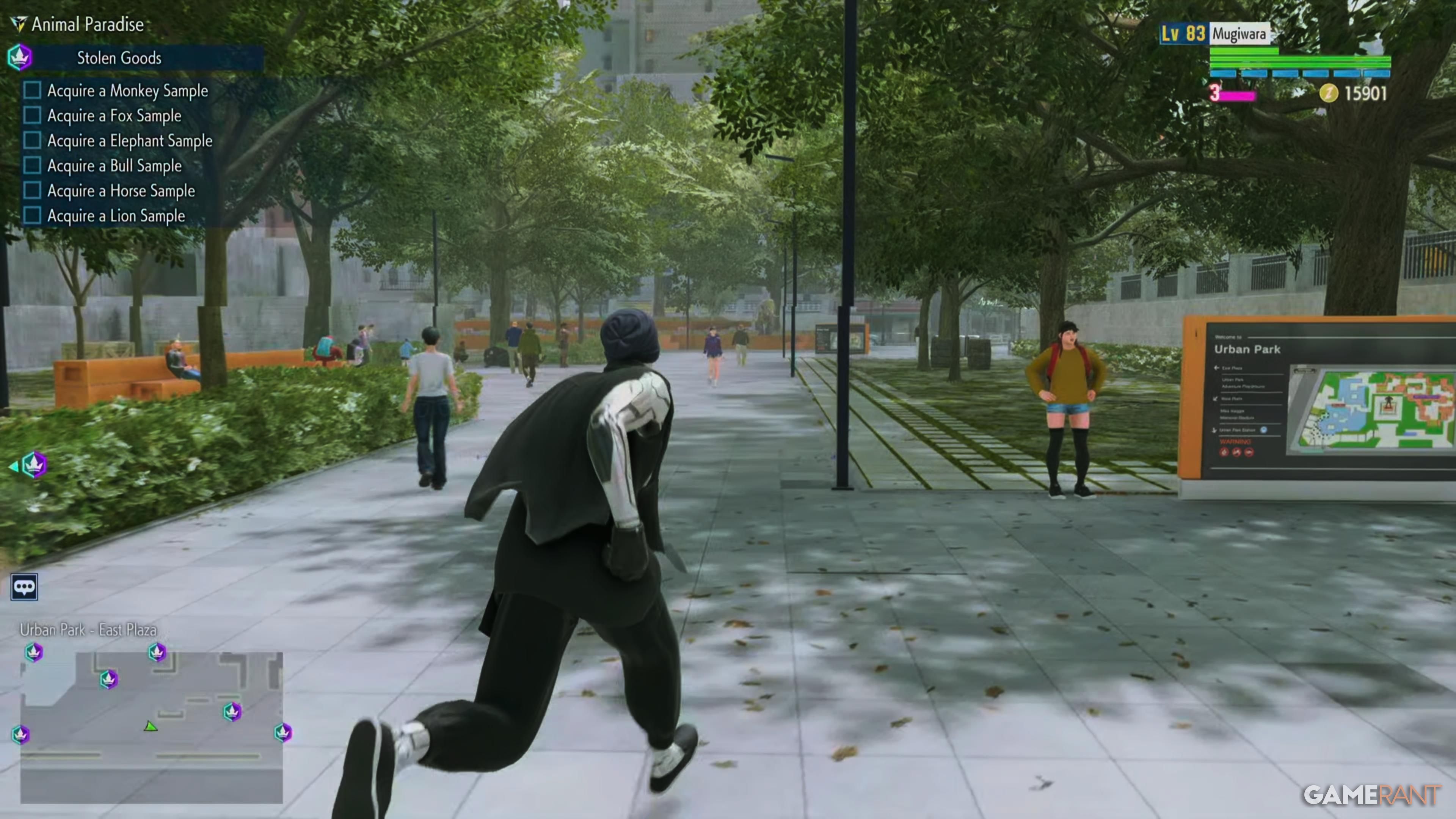 Once the battle concludes and you secure the bag, approach Narumi who will express concern as her bag appears to be empty, although it should contain Animal Samples. Travel swiftly to Urban Park and enter its premises. You’ll notice numerous NPCs scattered around, some of them standing near various animals. Here is a guide on locating all the samples within the park: