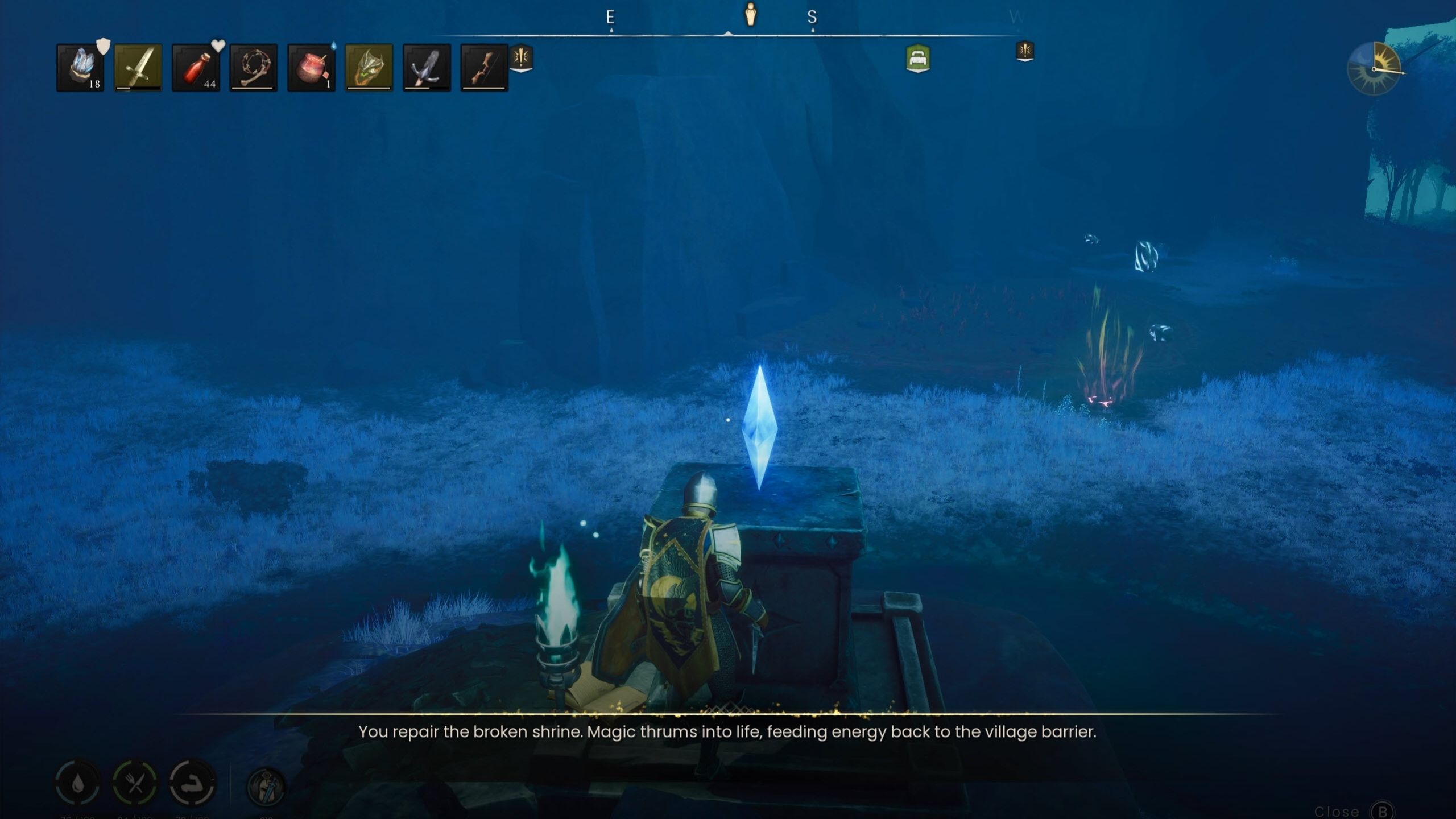 Okay, so I finally figured out the first shrine to break the barrier around Emberwood village! If you come in from Witchwillow Range, it’s right there at the entrance. All you have to do is chat with the three ghosts hanging around it – they’ll tell you this really sad story about a party gone wrong, and that’s it!