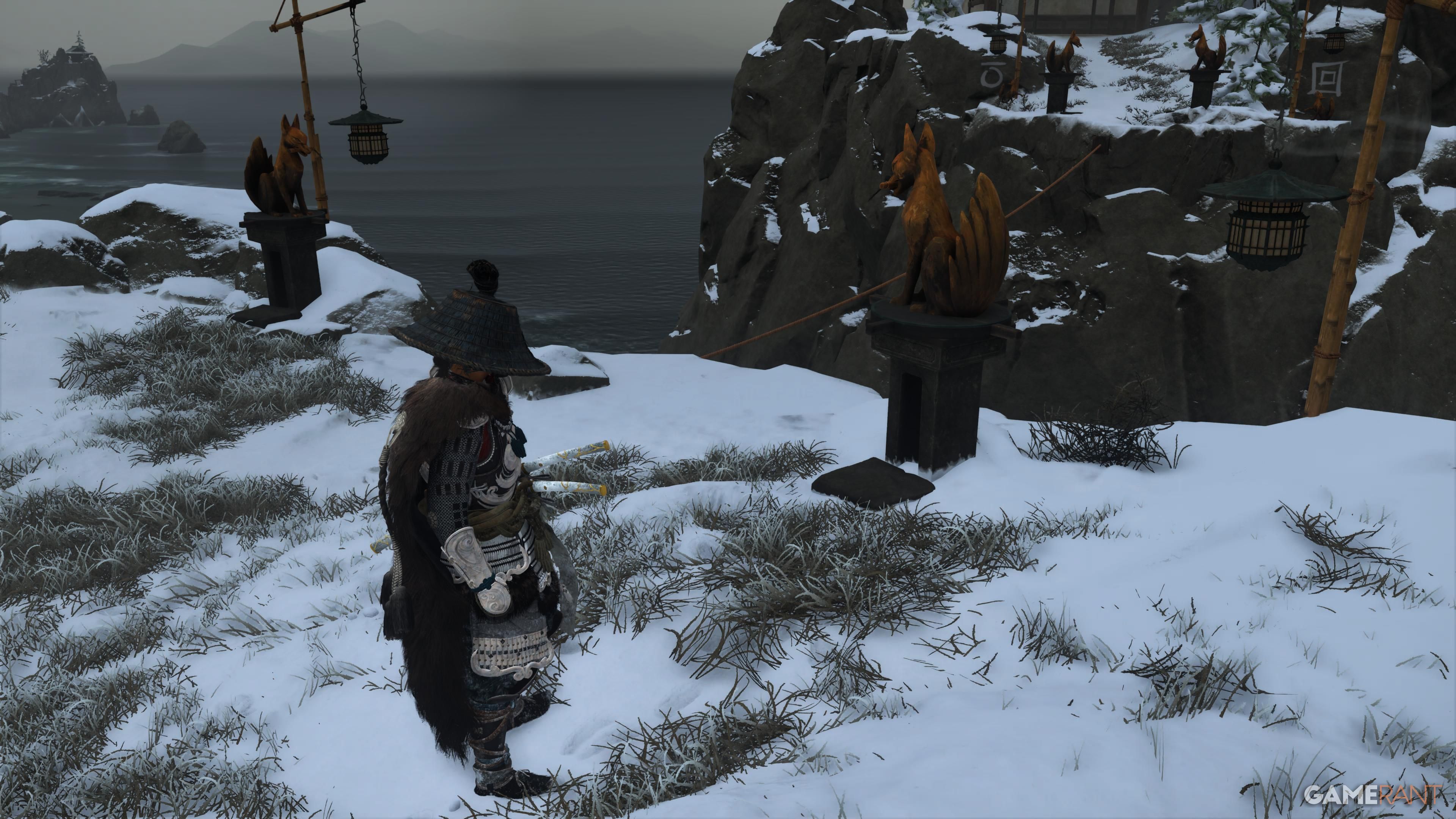 For this quest, head to the Shipwreck Shoal, which is northeast of the Teshio Ridge area. Once you arrive, you’ll see a house in the distance that you can’t reach yet. Close by, you’ll find two wooden fox carvings that you can interact with – this starts the puzzle. First, interact with the left statue and turn it to face right. Then, interact with the right statue and turn it to face left. This will make the statues face each other, and a rope will appear, letting you cross over to the other side.