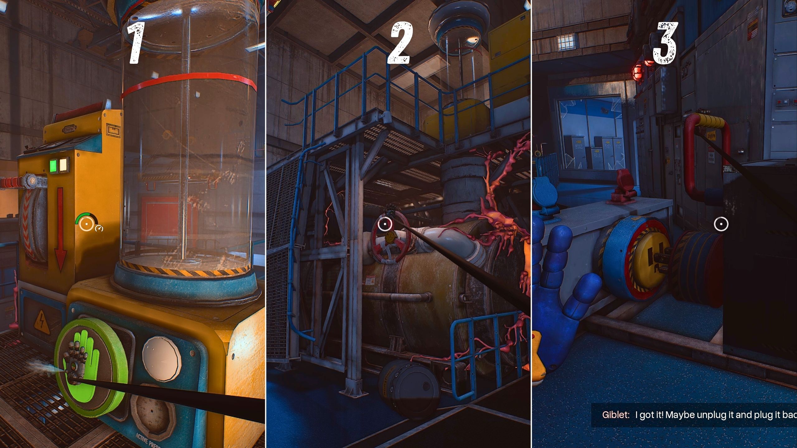In Poppy Playtime, Chapter 5 introduces Giblet & Chum, another pair of unforgettable characters. Once you meet them, you’ll head to the Engineering bay and have to get three power sources working at the same time. This will give Chum the energy he needs and let you move forward.
