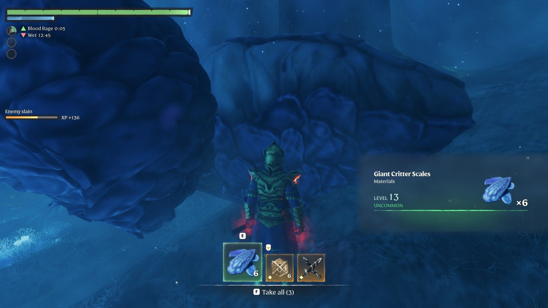 When you reach the Shroud Root, look for a large creature queen in the middle of the cave. We suggest clearing the fog by first destroying the Shroud Root itself. You can’t miss the giant critter – it’s much bigger than your character and usually has smaller creatures around it. It’s fairly easy to defeat with a powerful weapon in Enshrouded. Just be careful not to get overwhelmed by smaller creatures and other monsters while collecting Giant Critter Scales.
