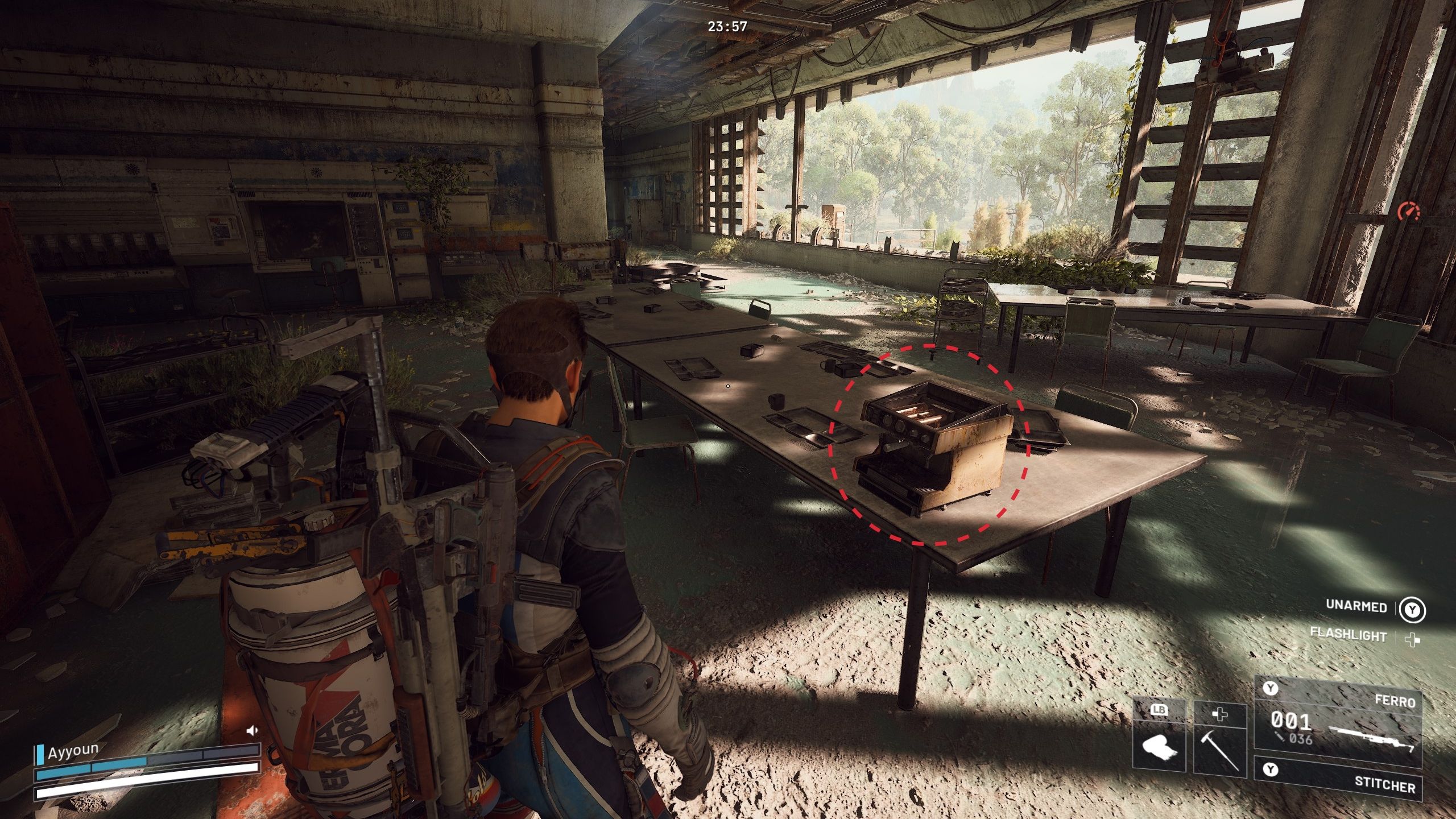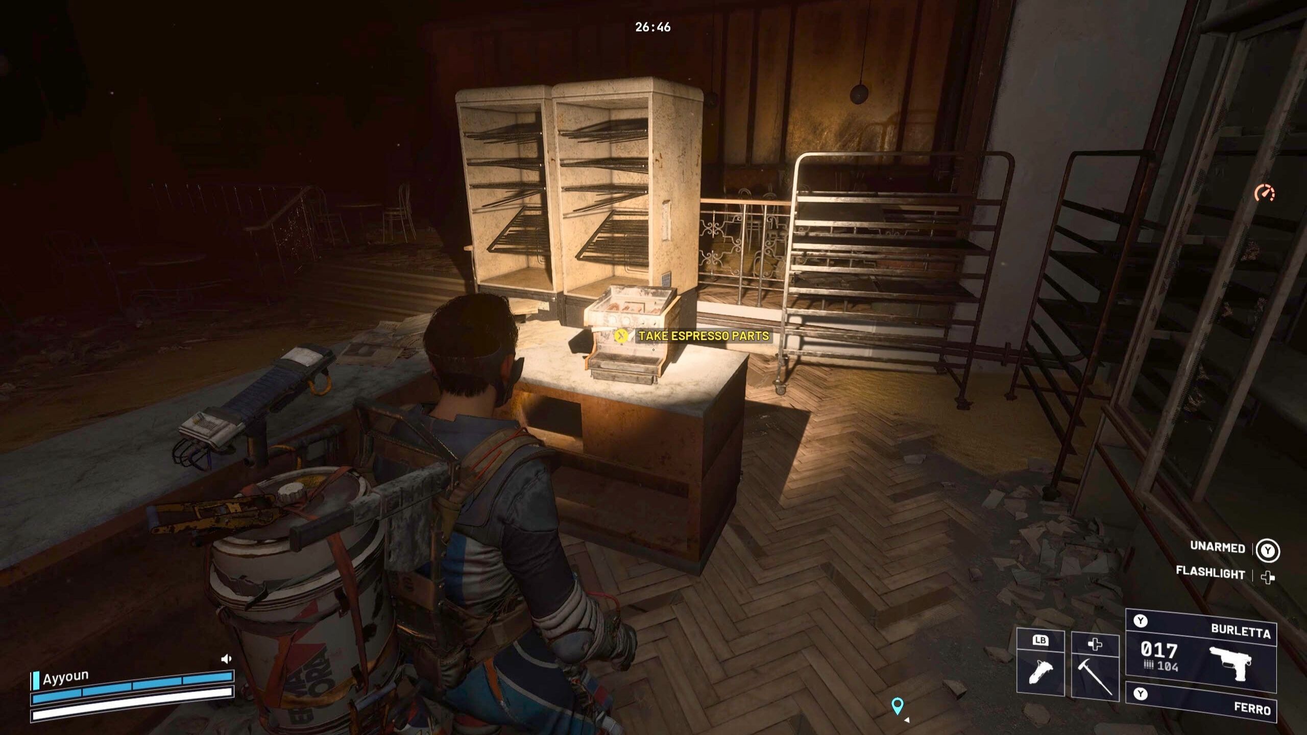 After destroying the turret, go to the right and search on the counter for a broken espresso machine. When you interact with it, you’ll receive Espresso Machine Parts. It’s a good idea to put these parts in your Safe Pocket to keep them safe until you can leave the area. With the parts, you can now return to Apollo and finish the Espresso quest in ARC Raiders.