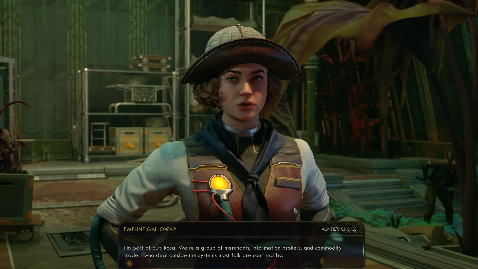Sub Rosa isn’t officially connected to either the Protectorate or Auntie’s Choice, although it does share some business-like qualities with the latter. While it’s possible to finish the game without joining Sub Rosa, it’s strongly recommended to improve your standing with them. This will give you access to Free Market Station and unlock new merchants in each area.