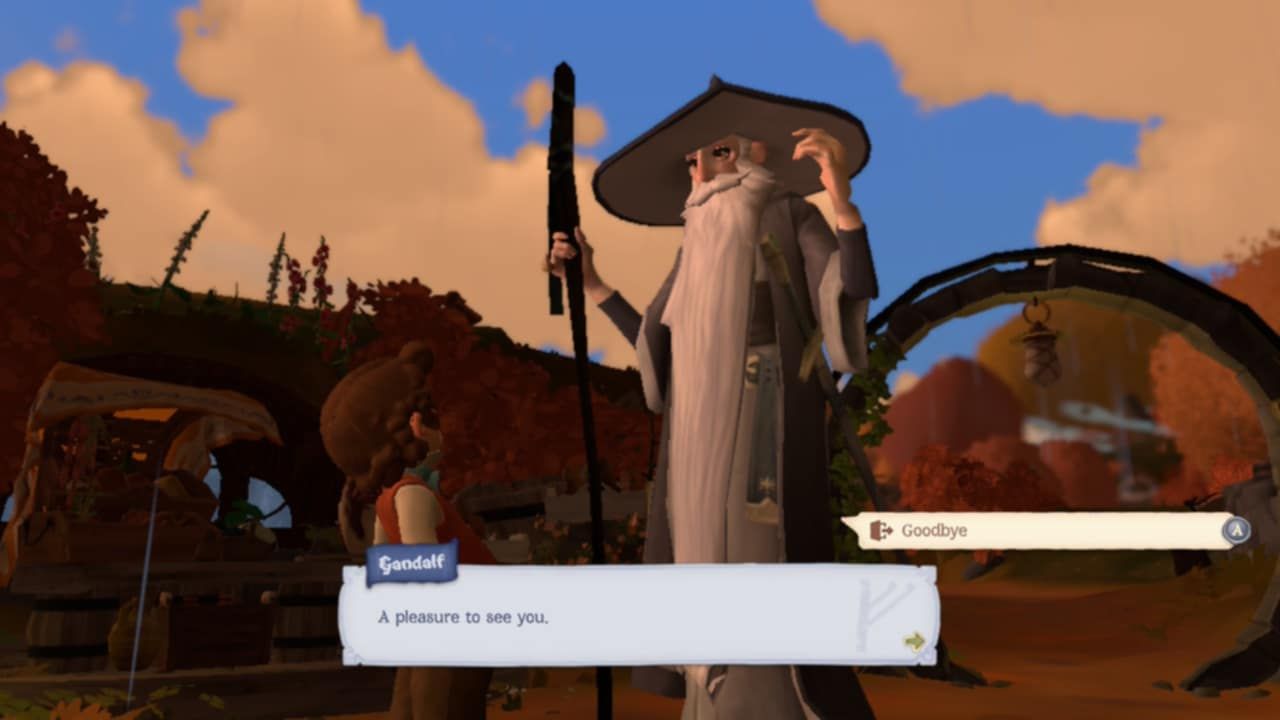 In the story known as “Tales of the Shire,” Gandalf the Grey is the one who awakens the protagonist in this game. This wise and ancient Istari then guides the player character towards their new residence at Bywater, hinting that he will return to check on them, likely when they are least prepared. While I won’t reveal the specifics, Gandalf keeps his promise and shows up multiple times throughout the main questline of “Tales of the Shire.