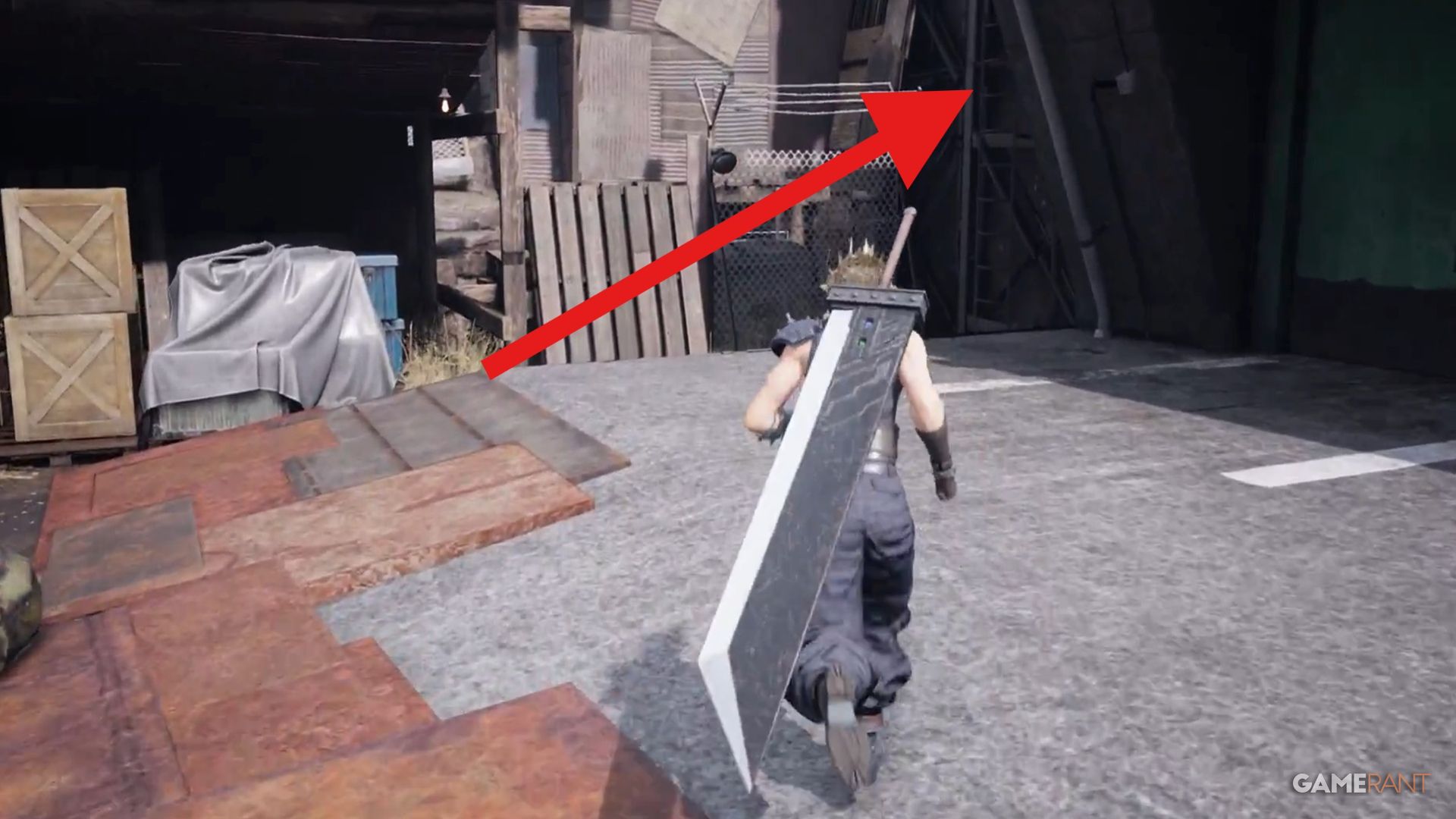You’ll find this Discovery while following the story during the ‘Through the Backstreets’ section. When you reach the purple marker on your map, Aerith will attempt to open the gate, but it won’t work. She’ll then suggest a different way forward: moving a large green crate that’s to the left of the gate.