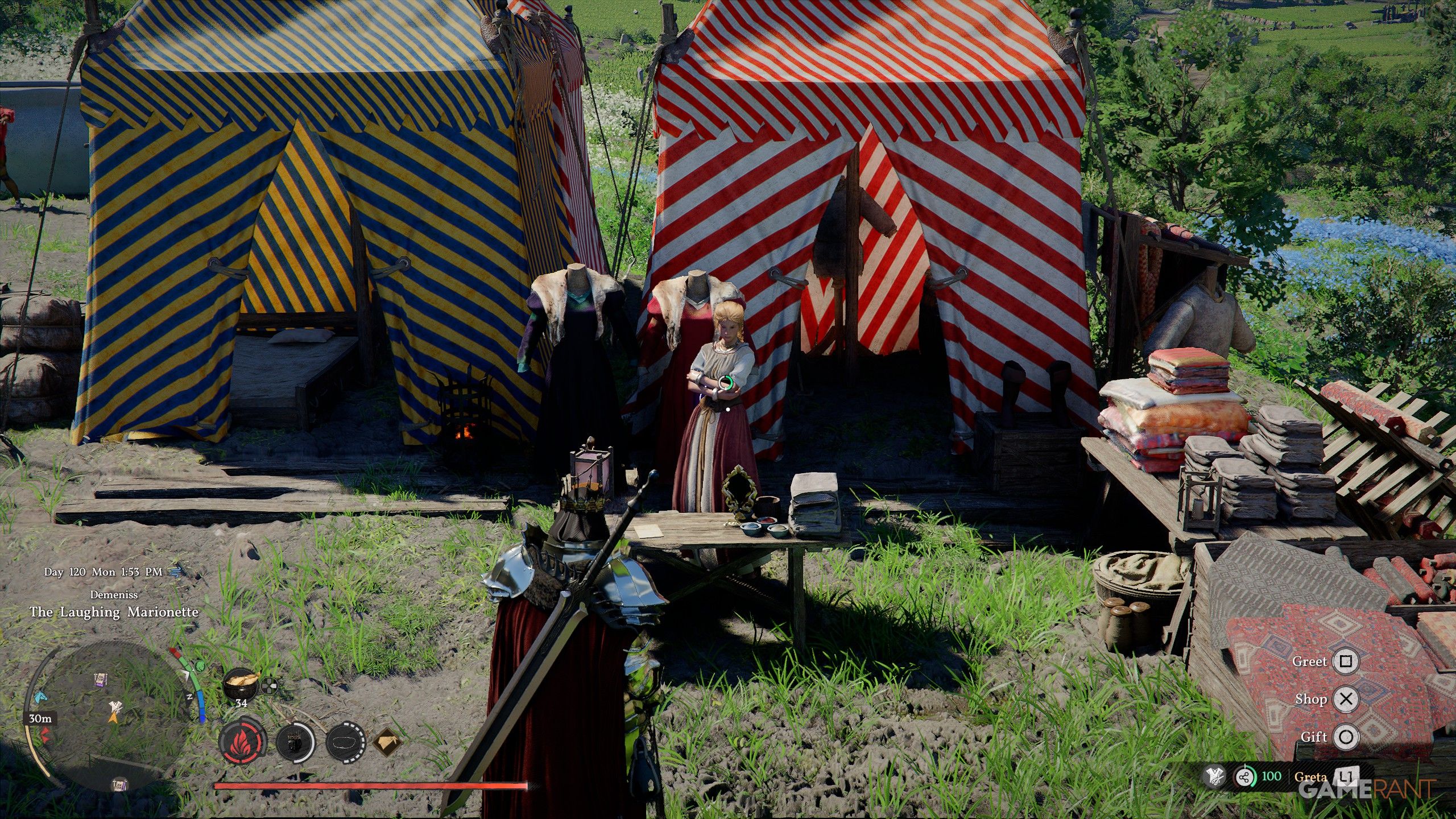 - In the Laughing Marionette, you can find Greta the Tailor in the western area by some tents.