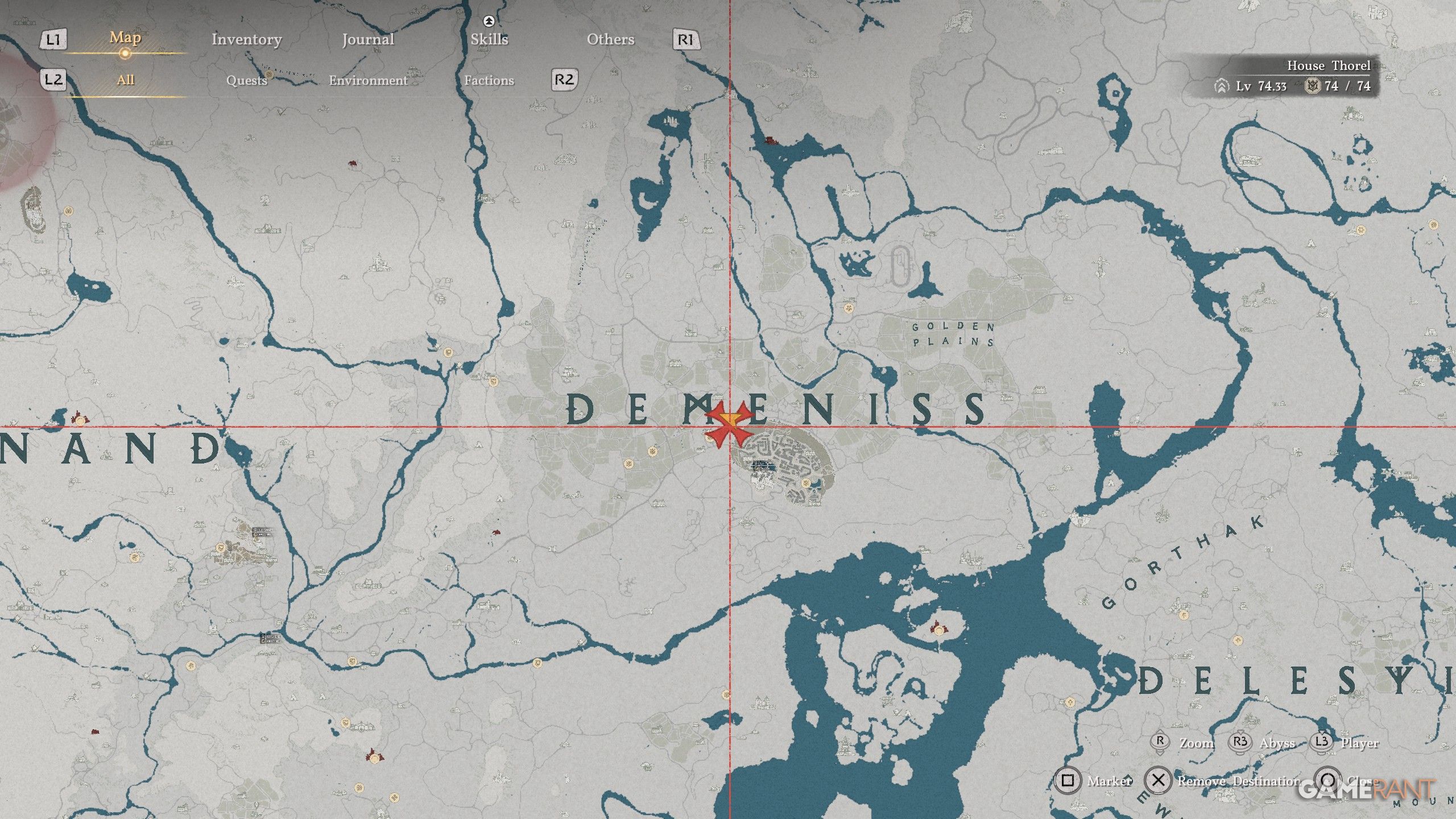 - Head to the Laughing Marionette, located in Demeniss, between the “M” and “E” in “Demeniss”, just outside the City of Demeniss main gate.