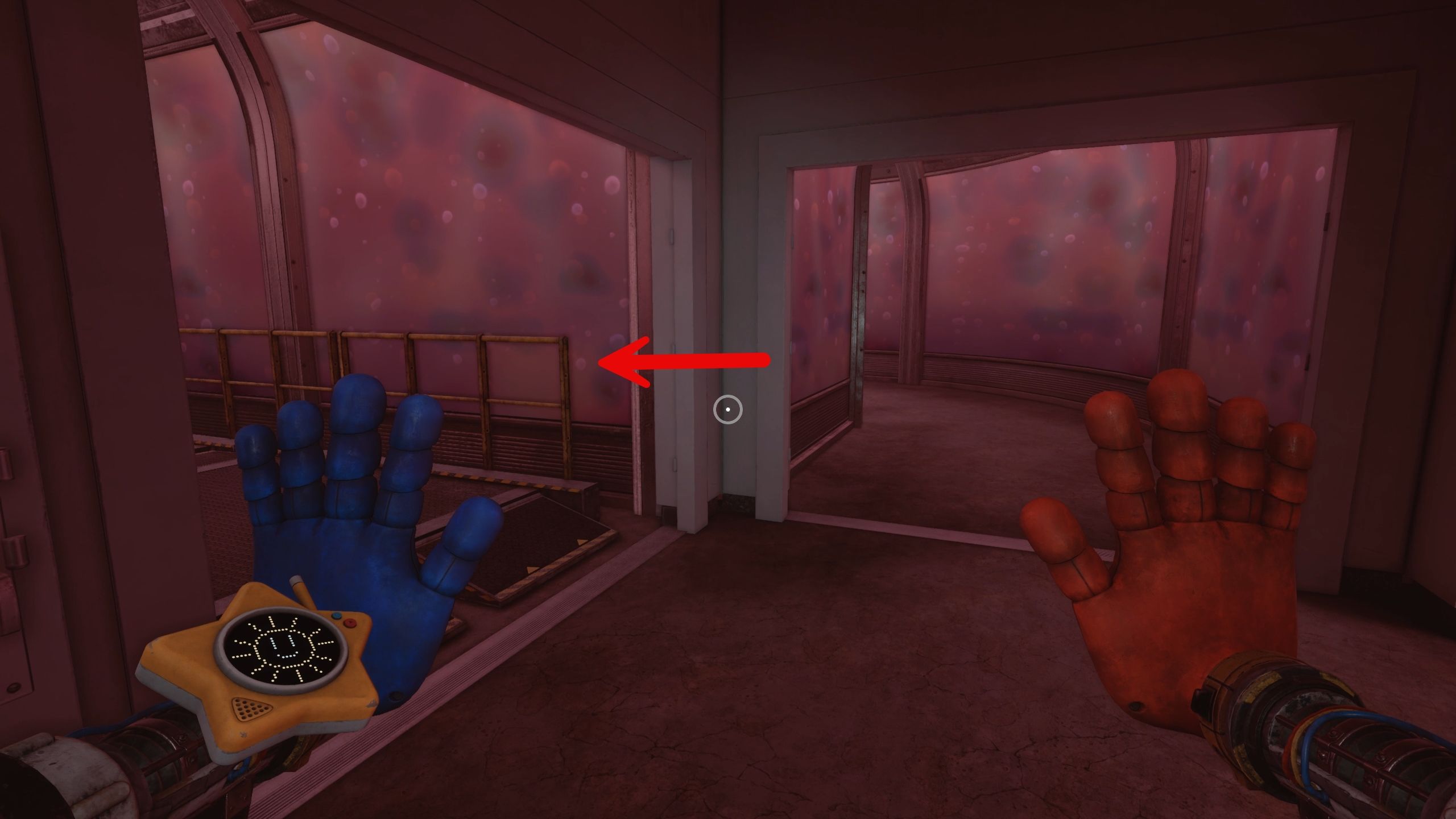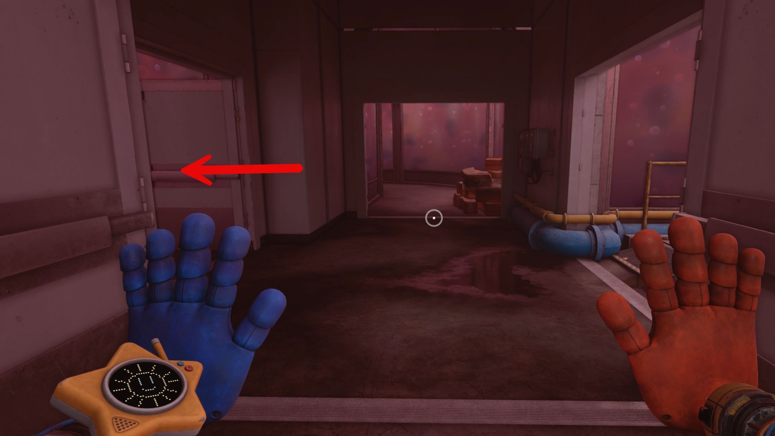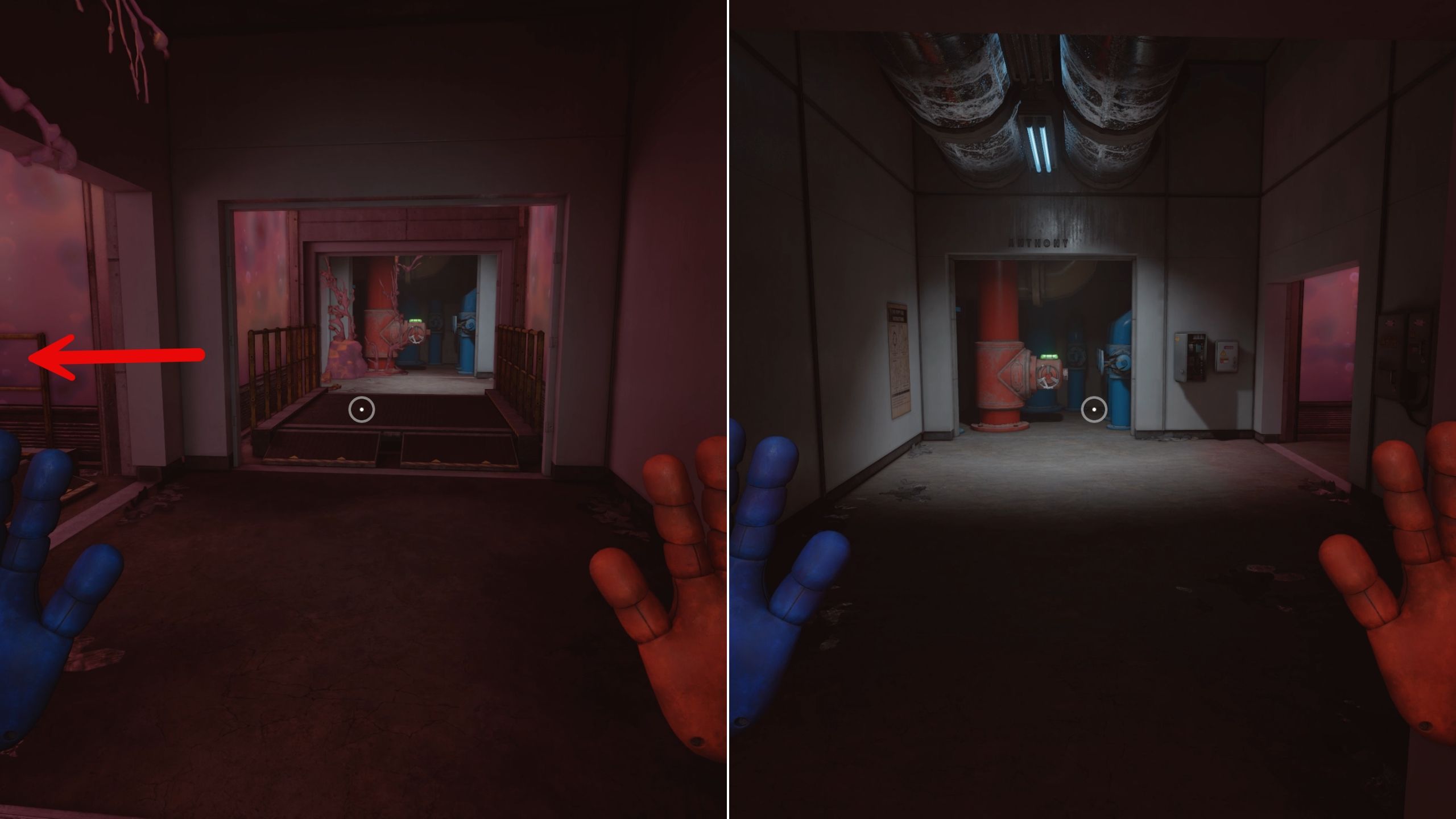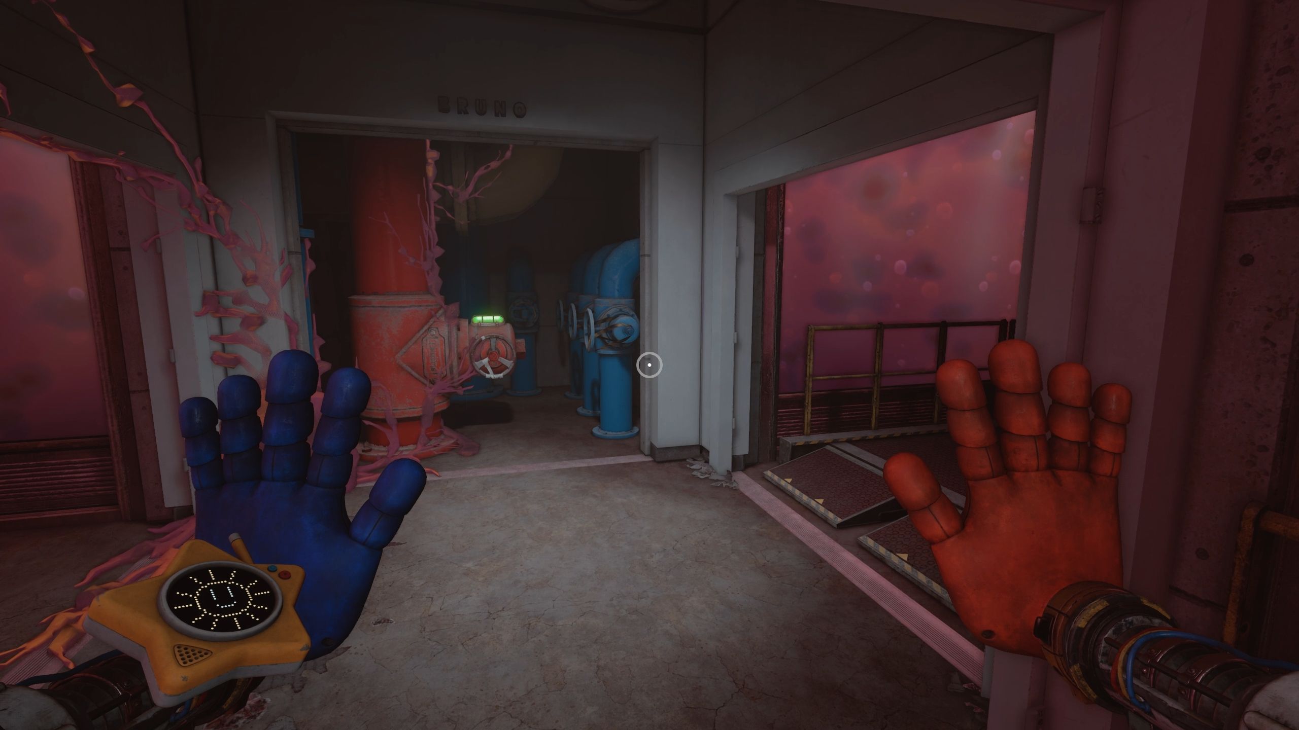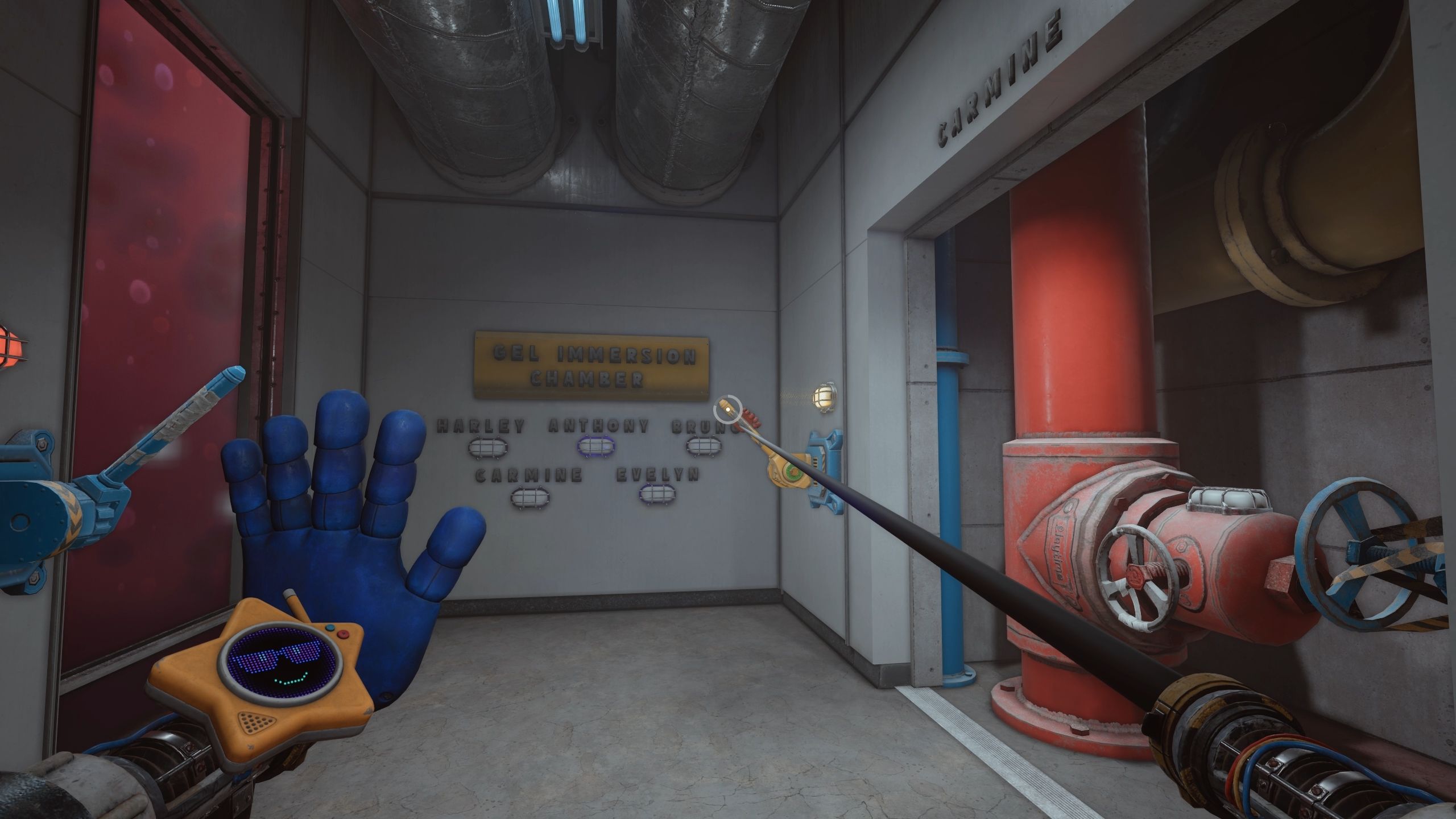 Head out of the hallways and turn left to activate the last valve, Bruno, which will solve the Gel Immersion Chamber puzzle in Poppy Playtime: Chapter 5.