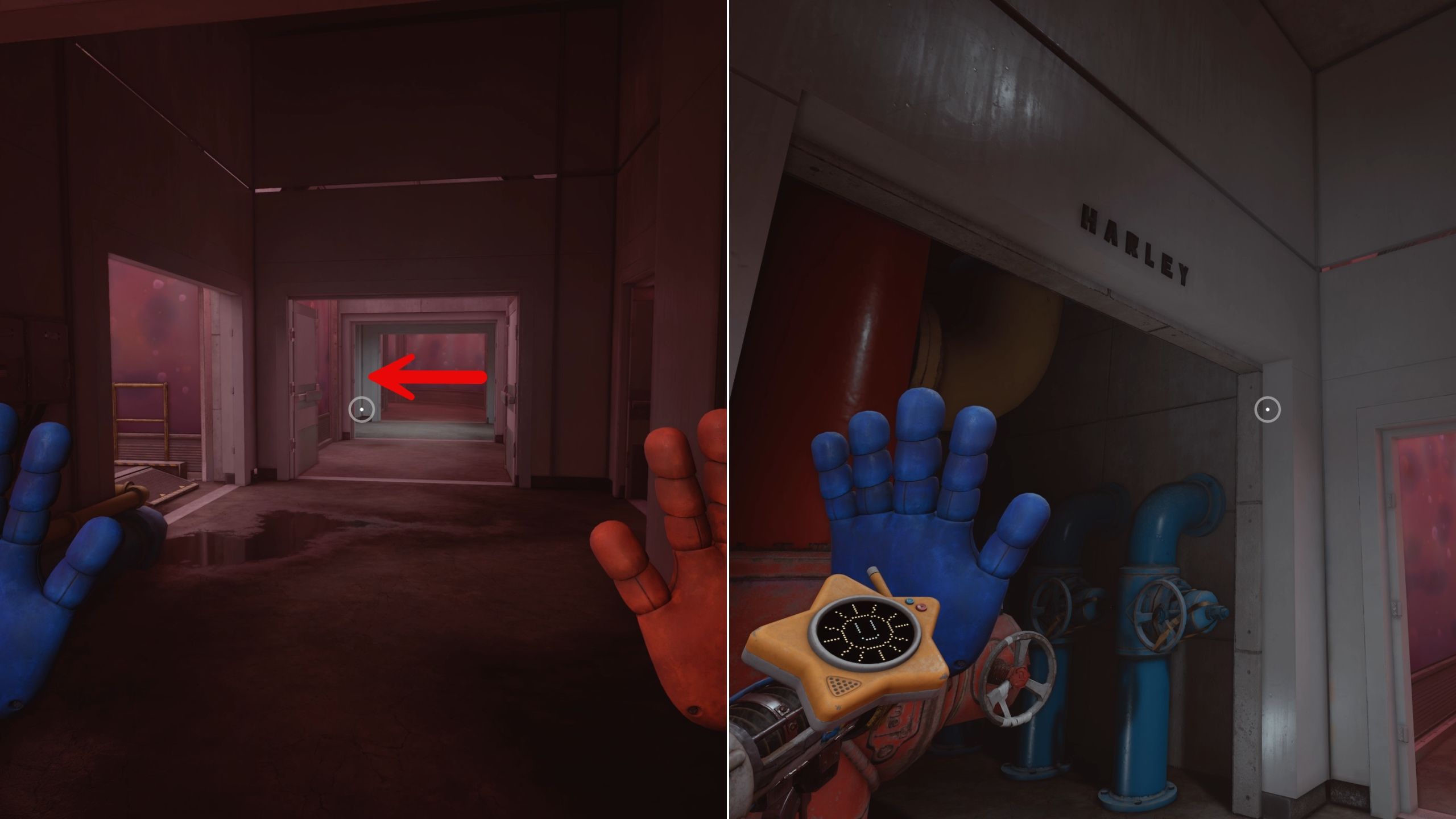 When you reach the hallway intersection, head straight into the brightly lit space and turn on Harley’s valve.