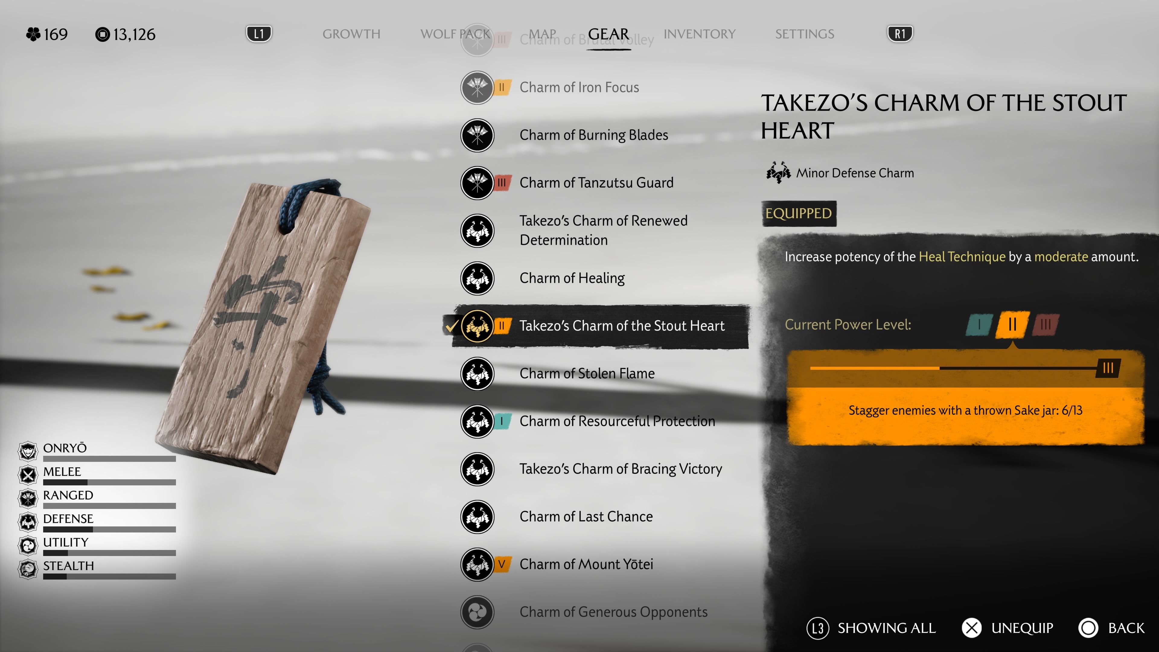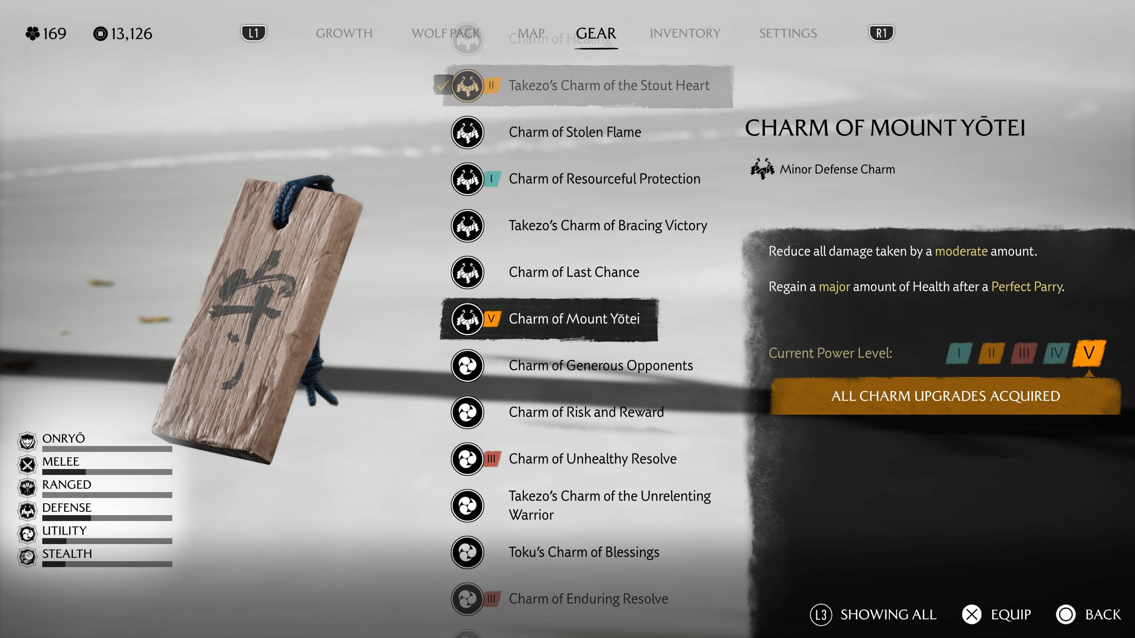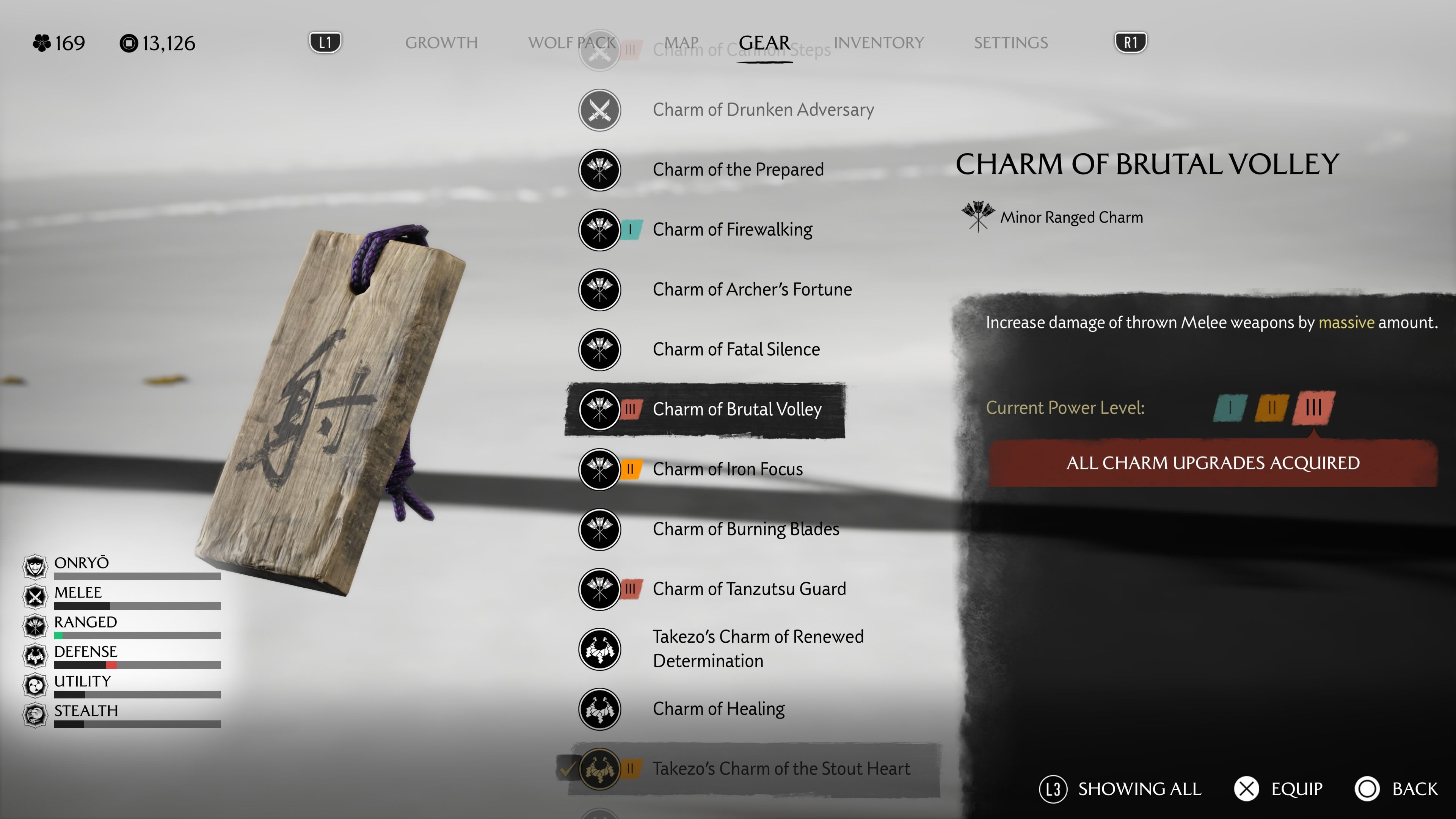 I slightly regret not upgrading Takezo’s Charm of the Stout Heart, which you get by defeating one of Takezo’s Disciples before your final battle with him.