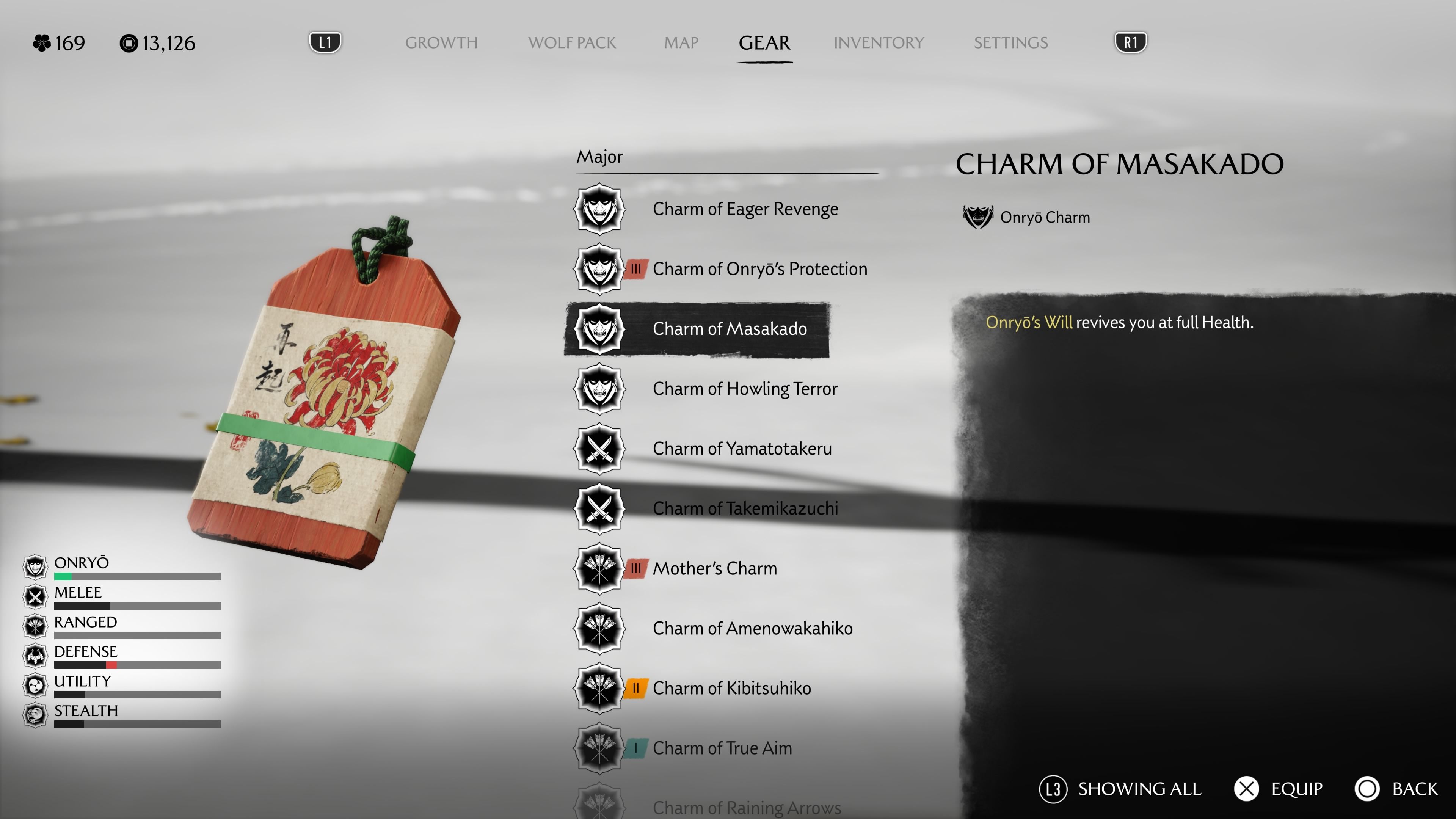 The Charm of Masakado is a fairly straightforward charm with a significant advantage that’s easy to miss: it lets your Onryo’s Will Technique fully restore your health.