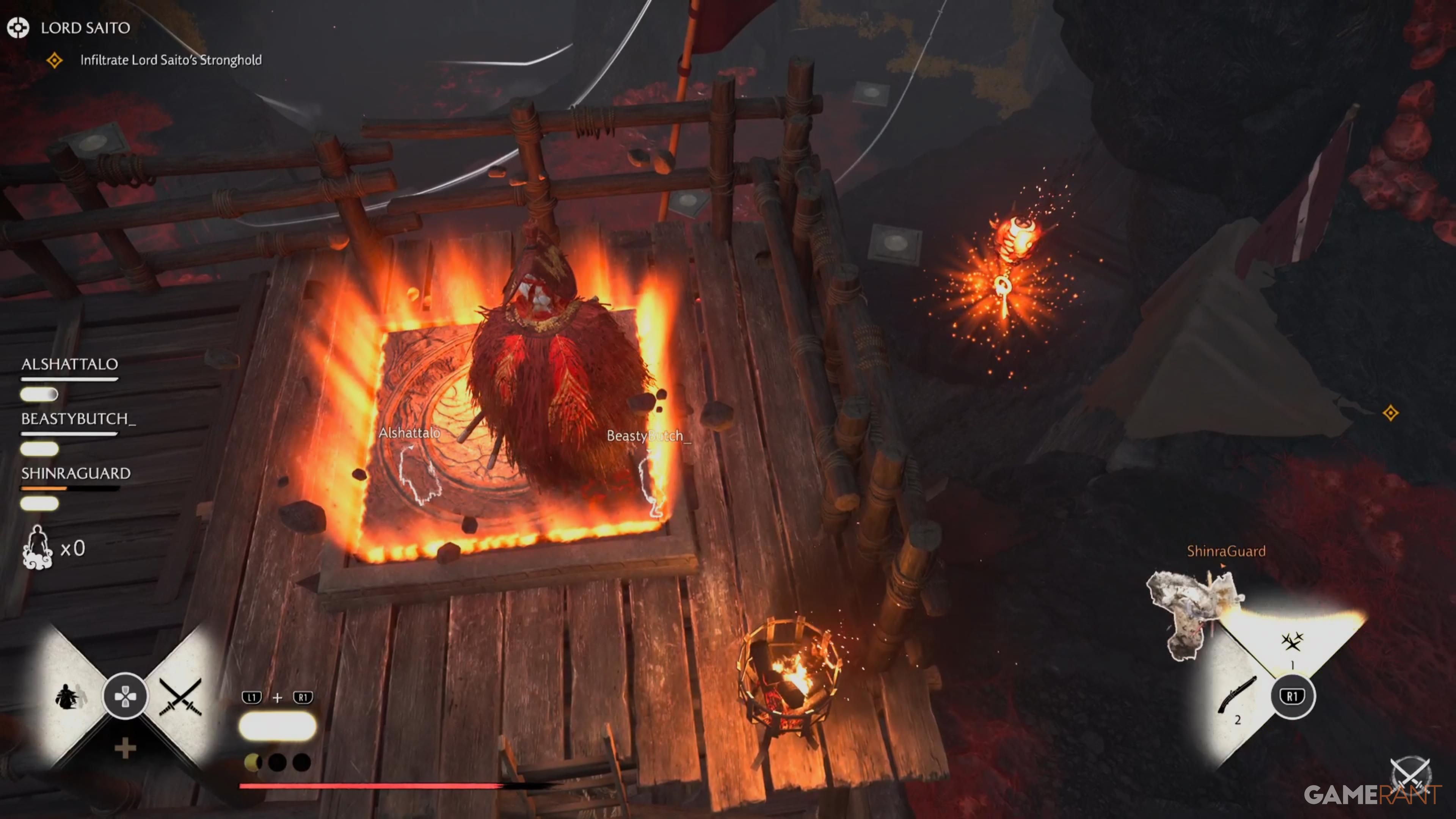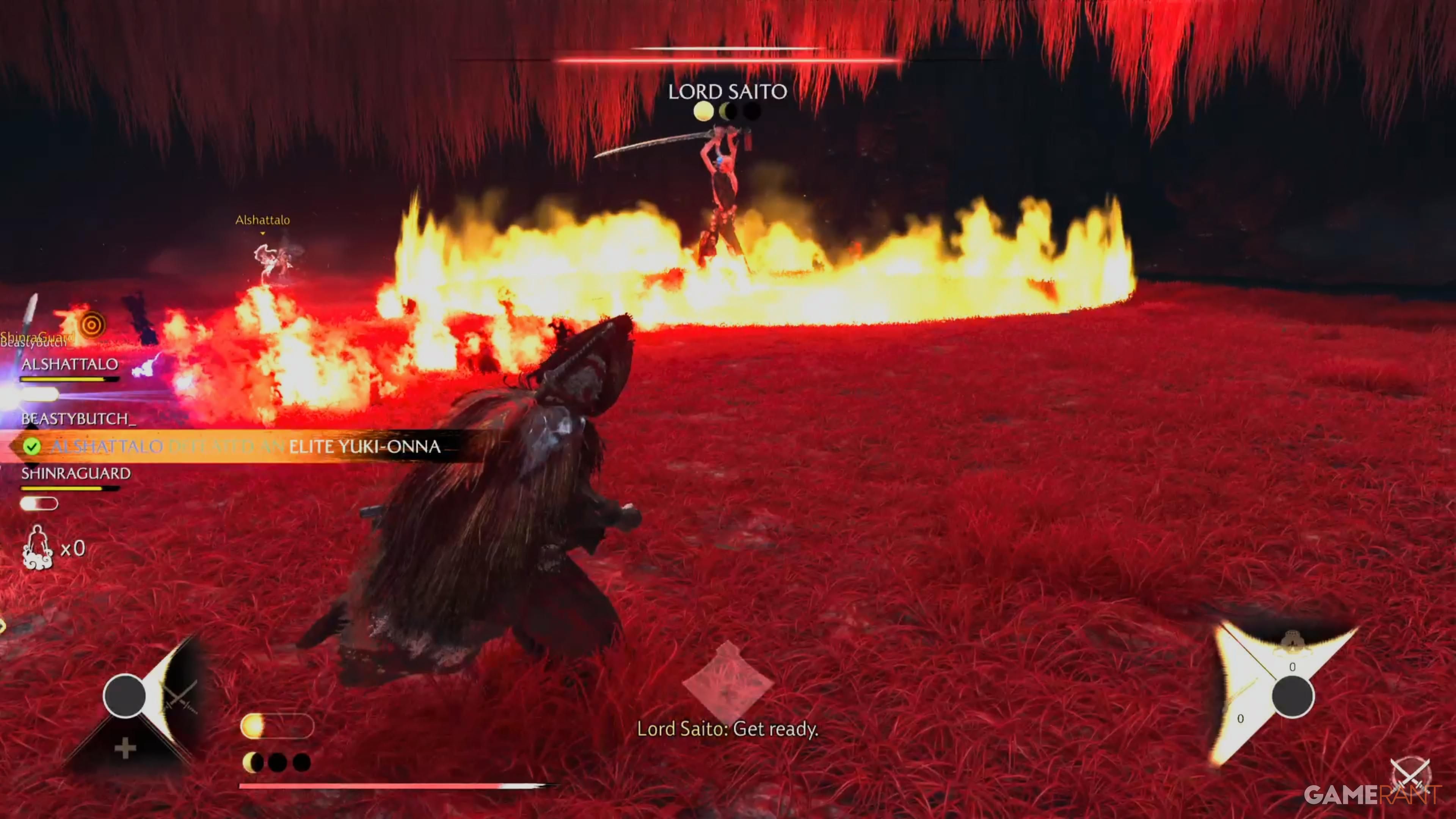 When the fight with Lord Saito begins, prioritize eliminating the Bo-Hiya enemies using ranged attacks before targeting anything else. After they’re defeated, clear out the remaining enemies, and then concentrate your efforts on Lord Saito himself.