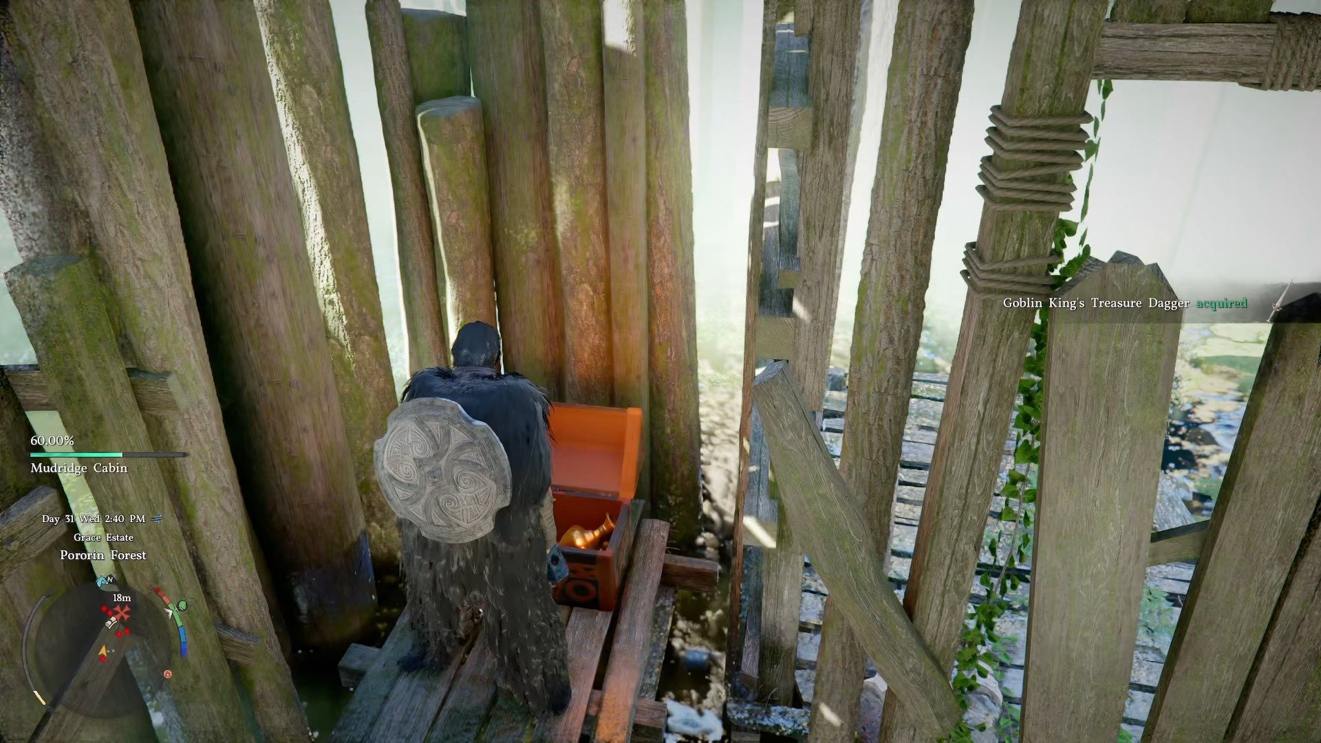 You can find the Goblin King’s Treasure Dagger hidden inside the Mudridge Cabin in the Crimson Desert. The Mudridge Cabin is a small bandit outpost located in the Pororin Forest, specifically built within a marshy pond.