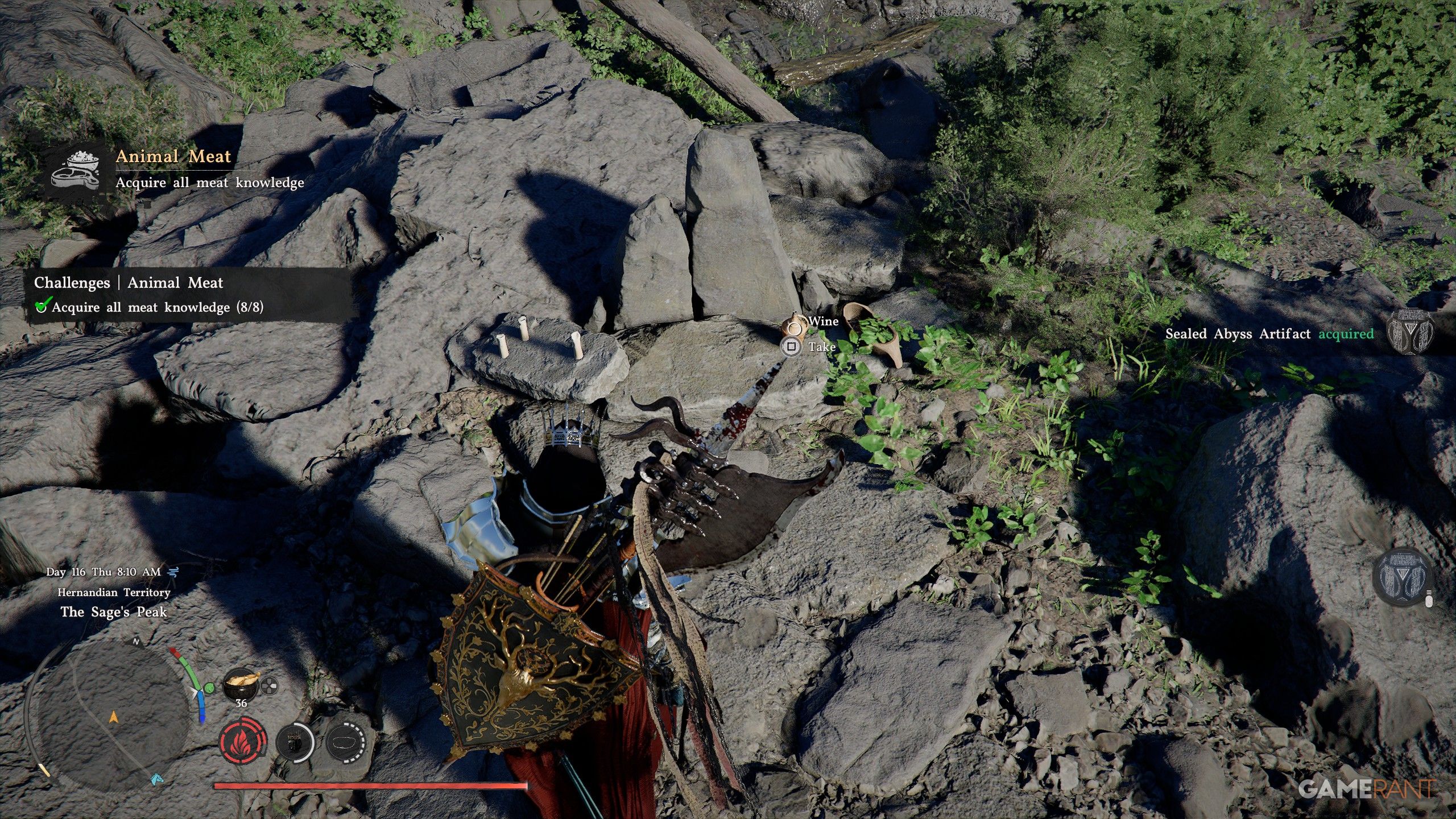 - Once you pick up the Sealed Abyss Artifact, you will trigger a new challenge to complete called “Animal Meat”.