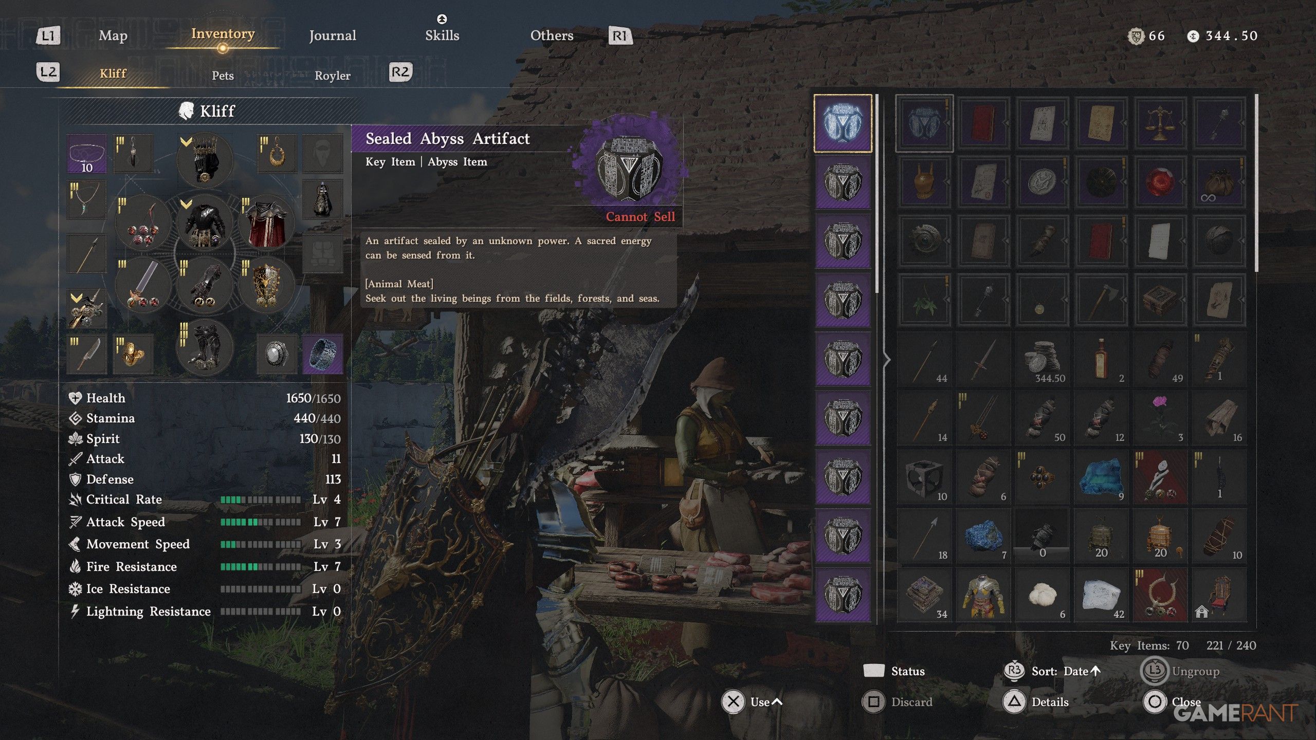- After you’ve managed to gain knowledge of all 8 meats listed above, enter your inventory to find the Sealed Abyss Artifact now glowing blue, and simply by selecting it, you can open it to get the Gourmet III Abyss Gear.