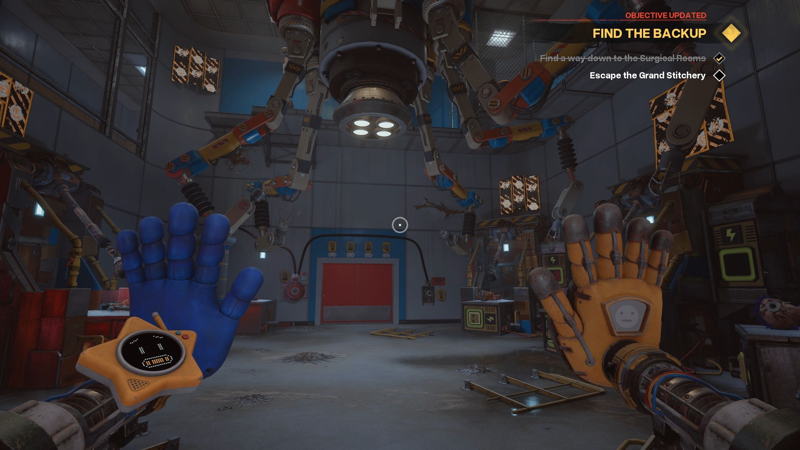 The Grand Stitchery is a scary room found near the end of the Reanimation level in Poppy Playtime: Chapter 5. Players get locked inside while giant needles sew together the Wrongside Outimal dolls. To escape, you need to solve a power puzzle: turn on all four switches, and then unlock the red door. This guide will quickly show you how to complete the puzzle and get out of this frightening area.