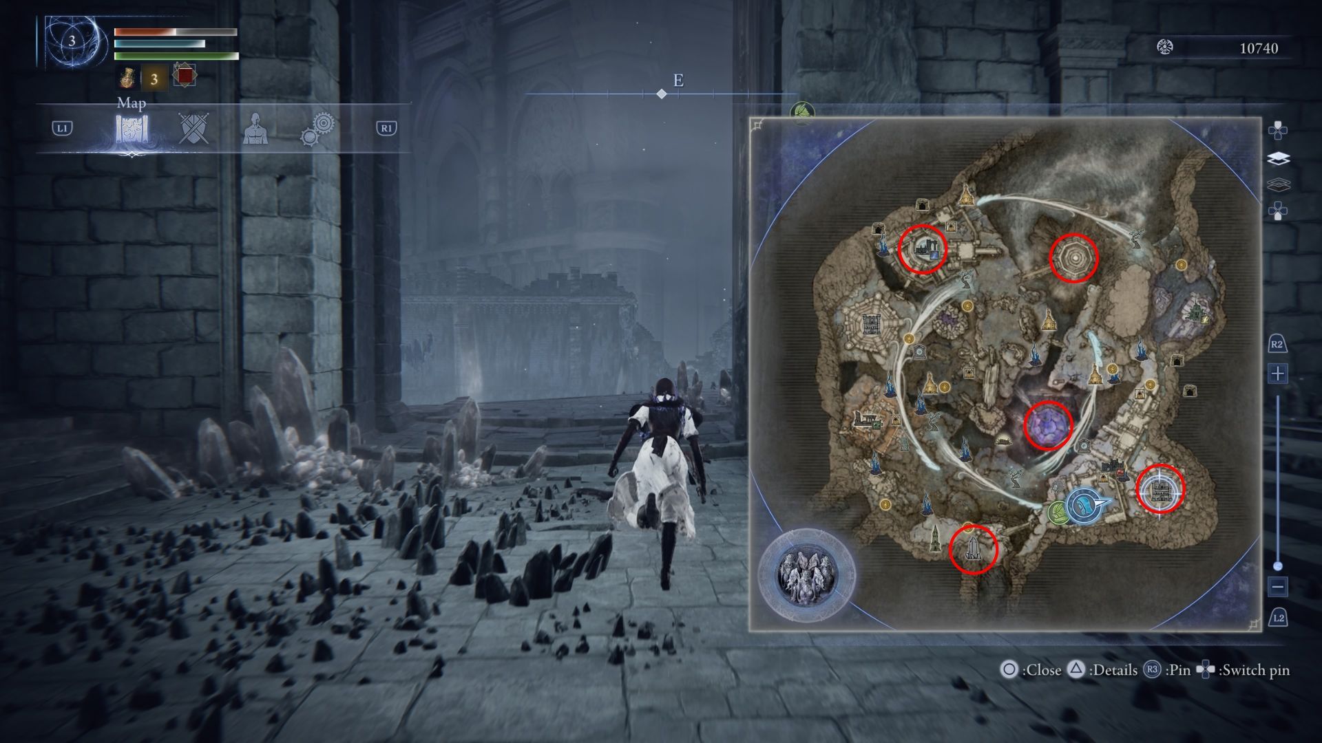 - Crystal Markers around the map show resonance crystals used to break the Crystal Curse.